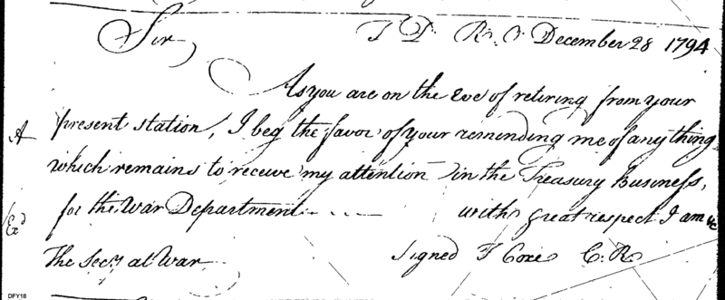 - In source: Collection: Letters Sent (Letterbook) of Commissioner of the Revenue, Tench Coxe, Relating to War Department Procurement, Apr 14, 1794-Aug 26, 1796. (RG75) (M74)