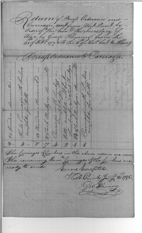 - Document: Return of Ordnance sent from West Point to Albany