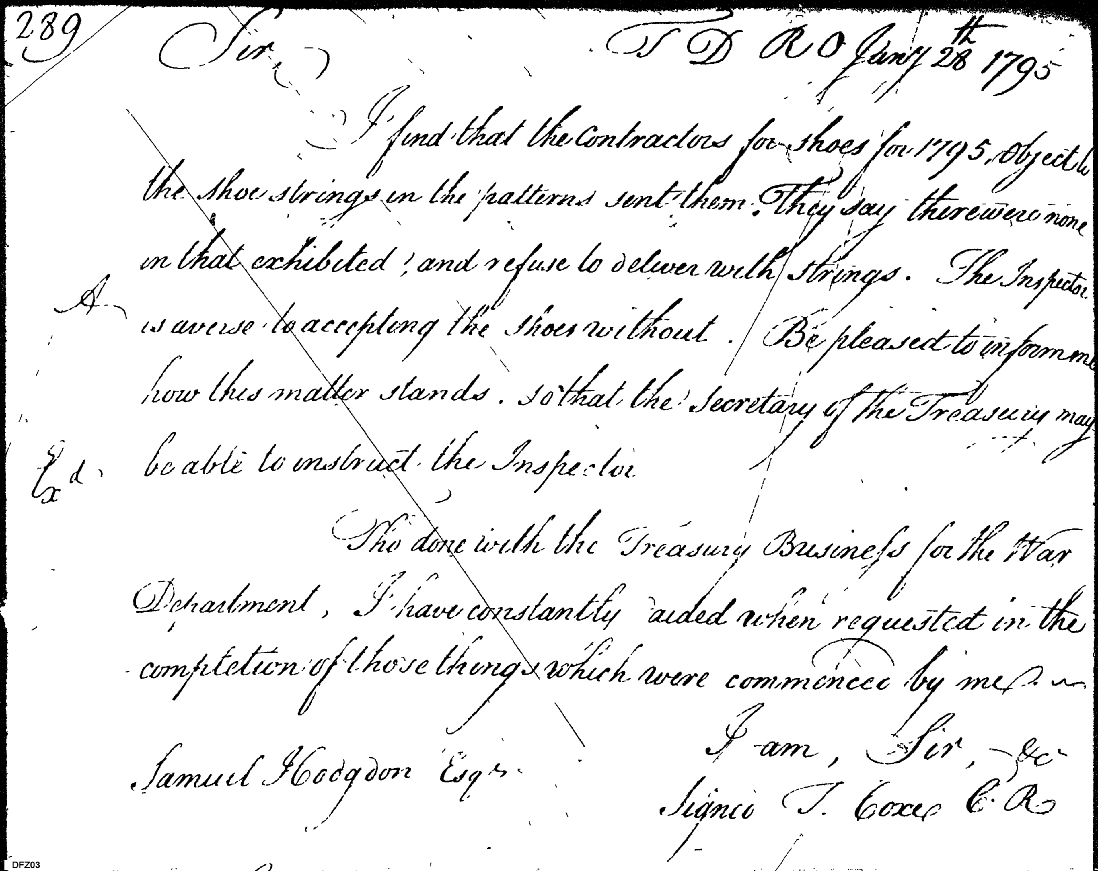 - In source: Collection: Letters Sent (Letterbook) of Commissioner of the Revenue, Tench Coxe, Relating to War Department Procurement, Apr 14, 1794-Aug 26, 1796. (RG75) (M74)