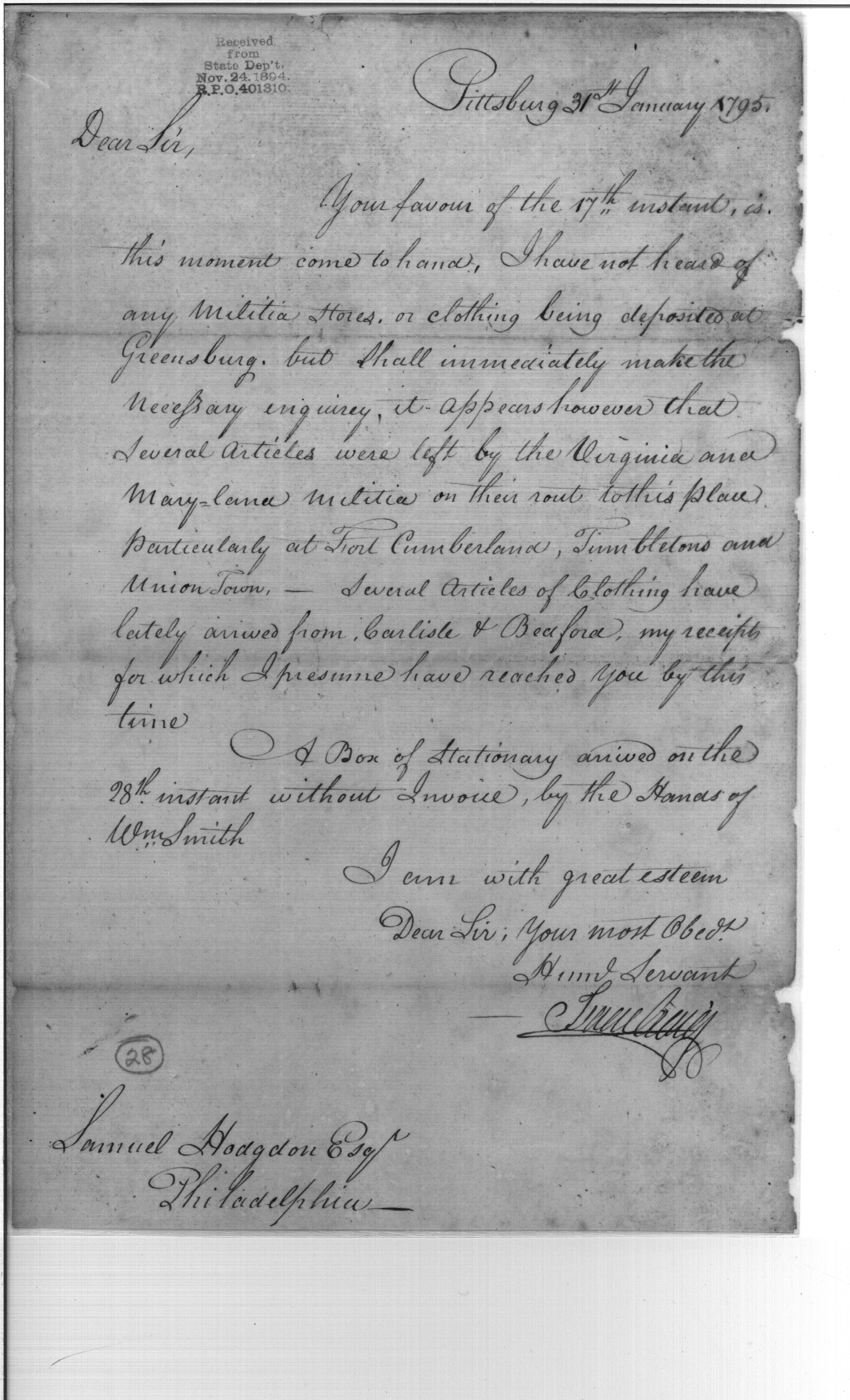 - In source: Collection: Post Revolutionary War Papers, 1784-1815. (RG94)