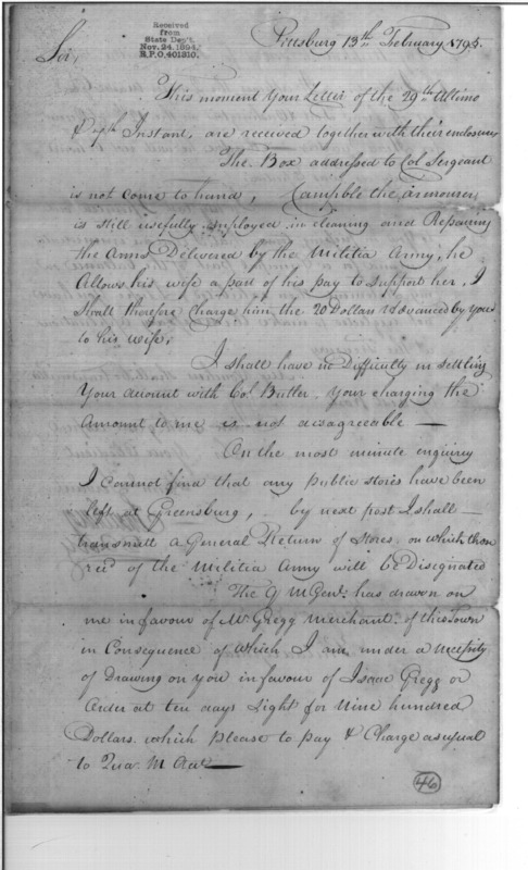 - In source: Collection: Post Revolutionary War Papers, 1784-1815. (RG94)