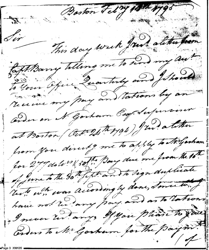 - In source: Collection: Post Revolutionary War Papers, 1784-1815. (RG94)