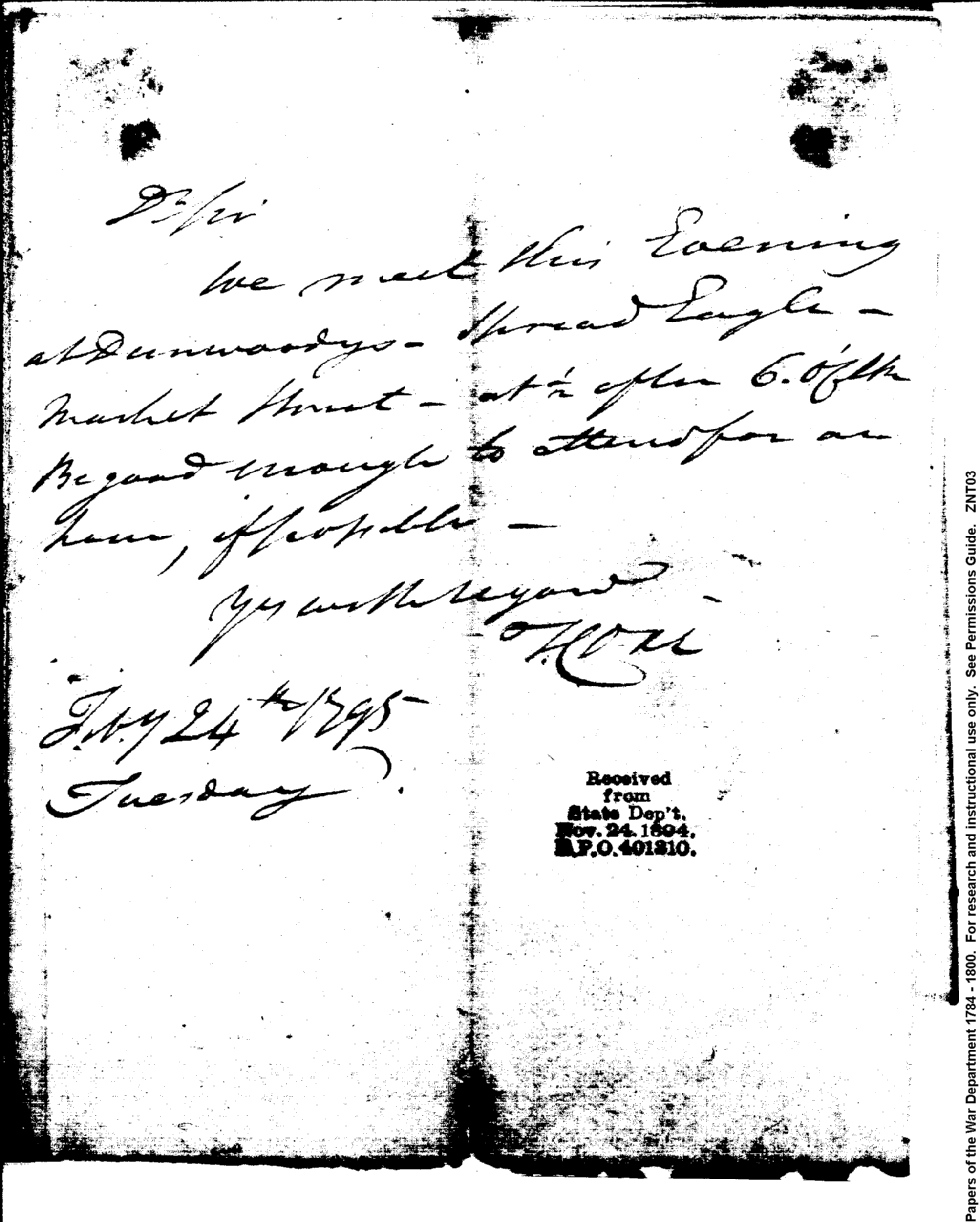 Post Revolutionary War Papers, 1784-1815. (RG94)