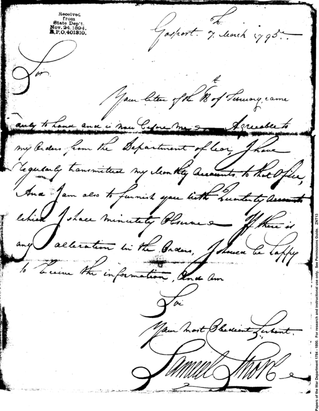 - In source: Collection: Post Revolutionary War Papers, 1784-1815. (RG94)