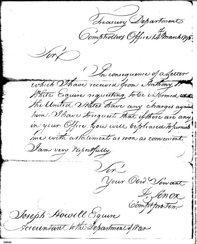 - In source: Collection: Post Revolutionary War Papers, 1784-1815. (RG94)