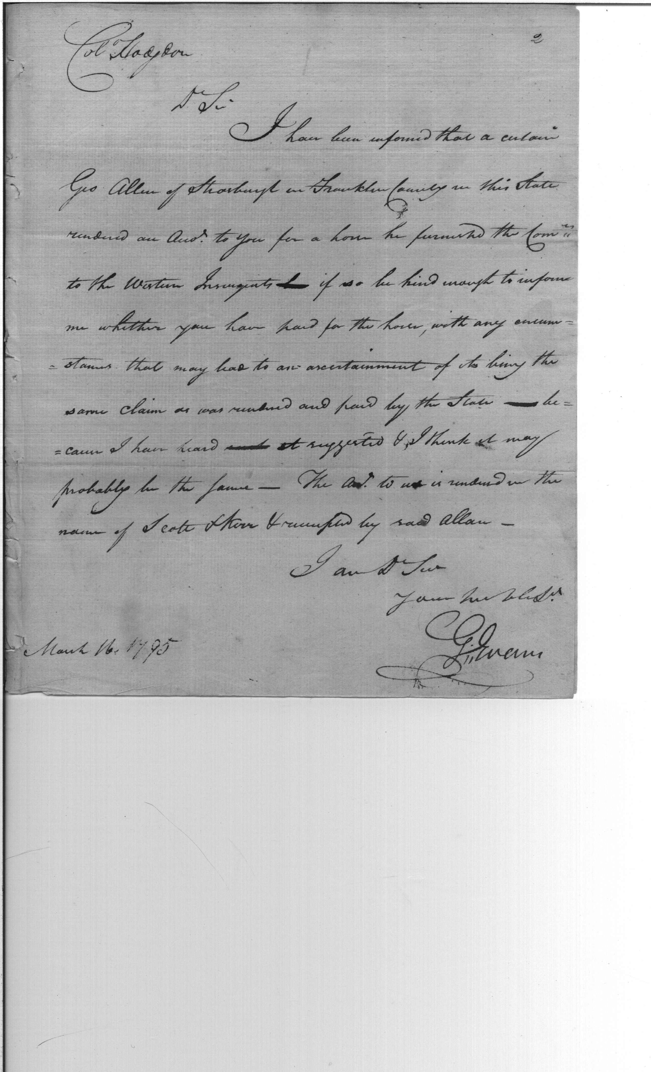 - Document: Horse Furnished During the Whiskey Rebellion