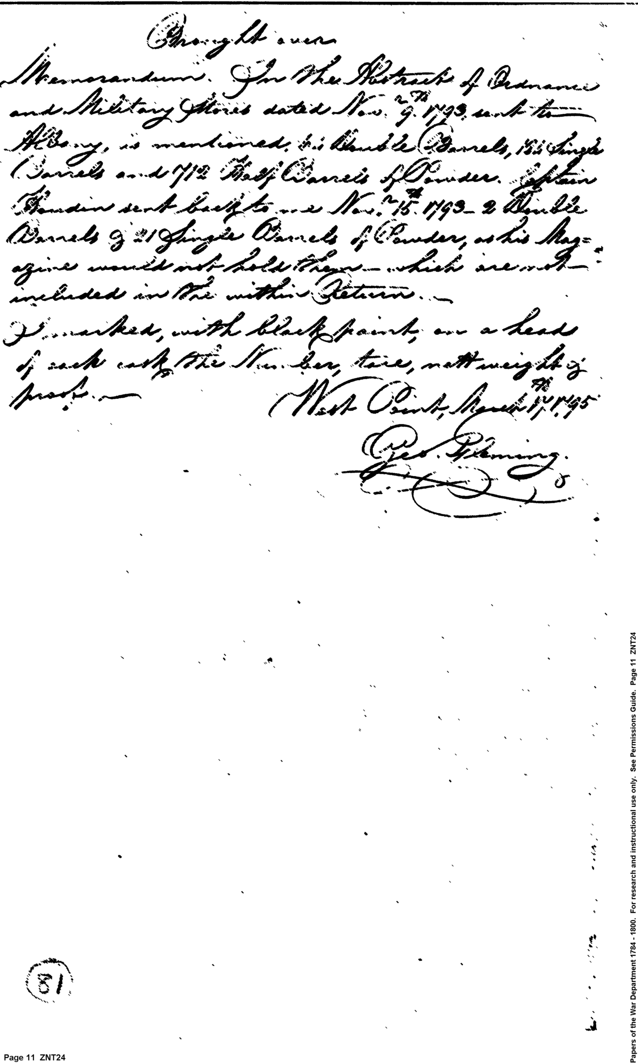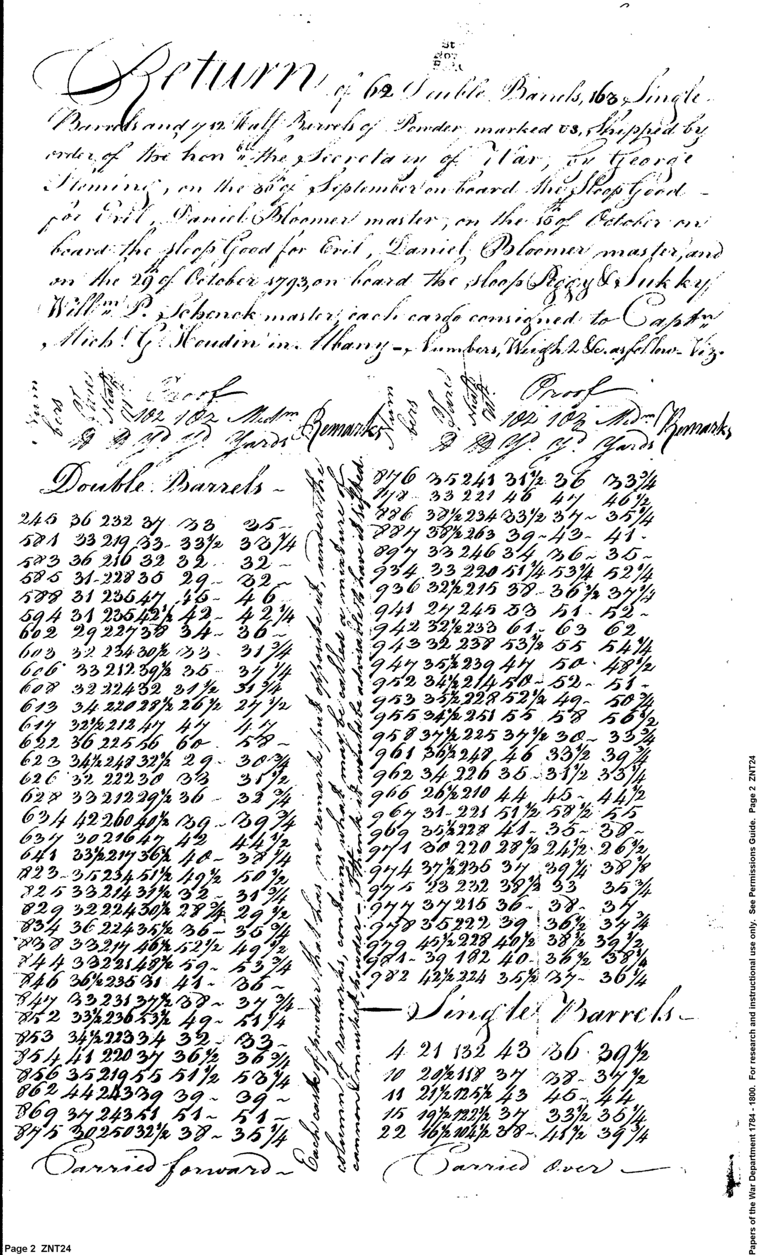 Document ViewerReturn of Powder Shipped to Albany in Fall 1793