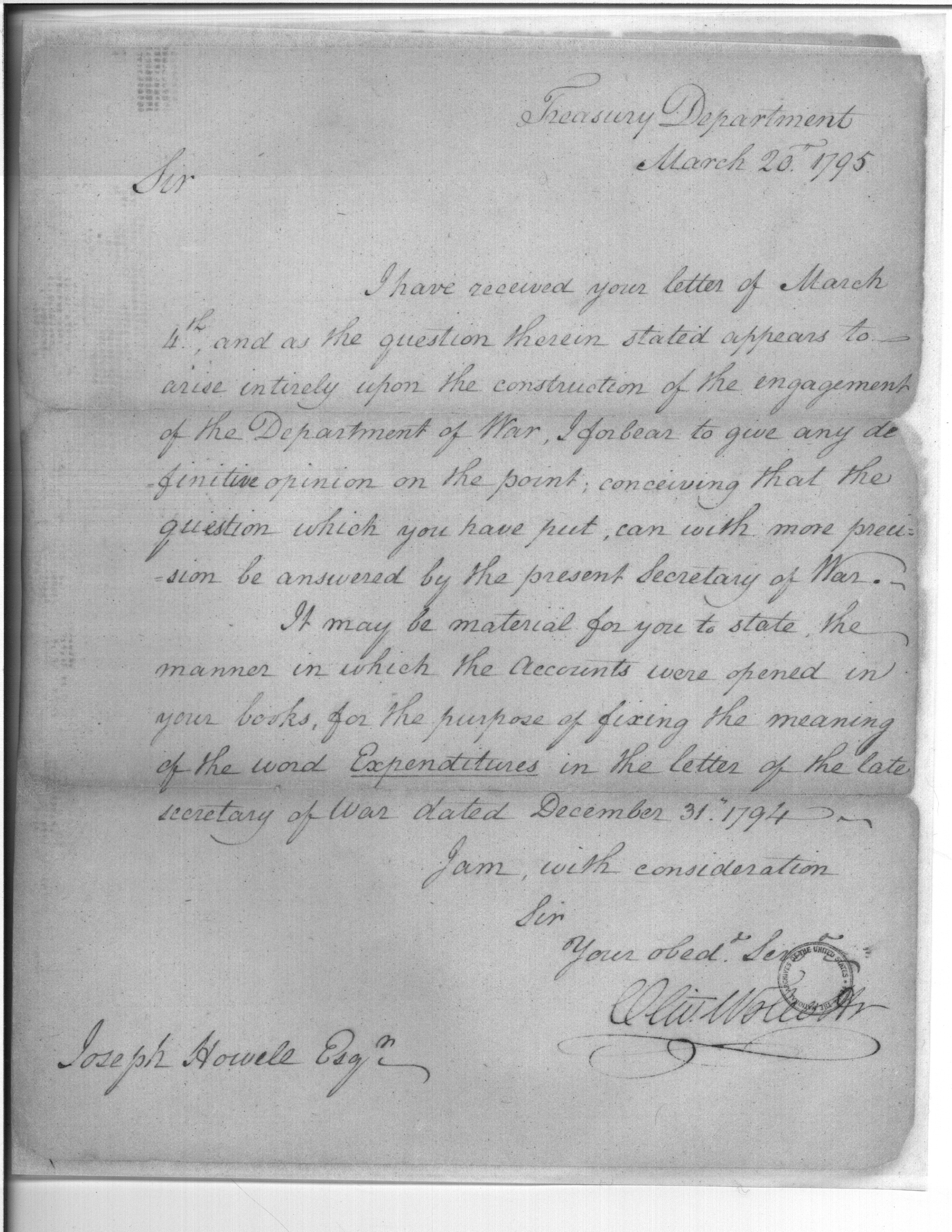 - Document: Referral to Secretary of War