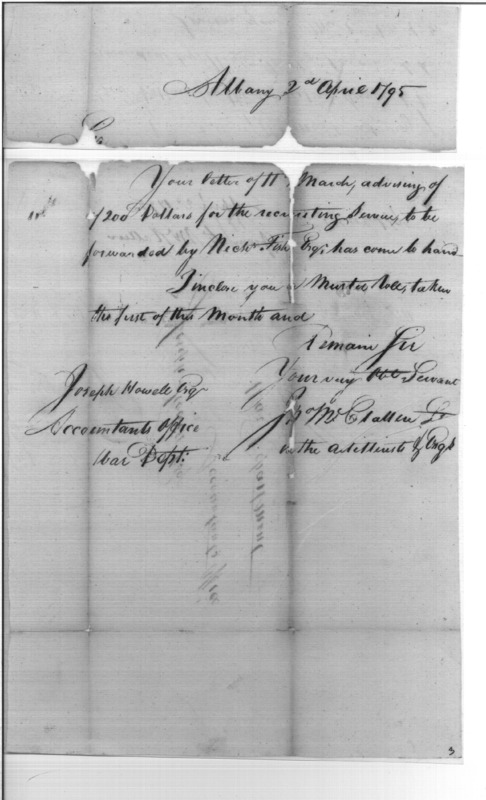 - Document: Enclosed Muster Roll, Acknowledged Receipt of Letter Regarding Pay for Recruiting Services