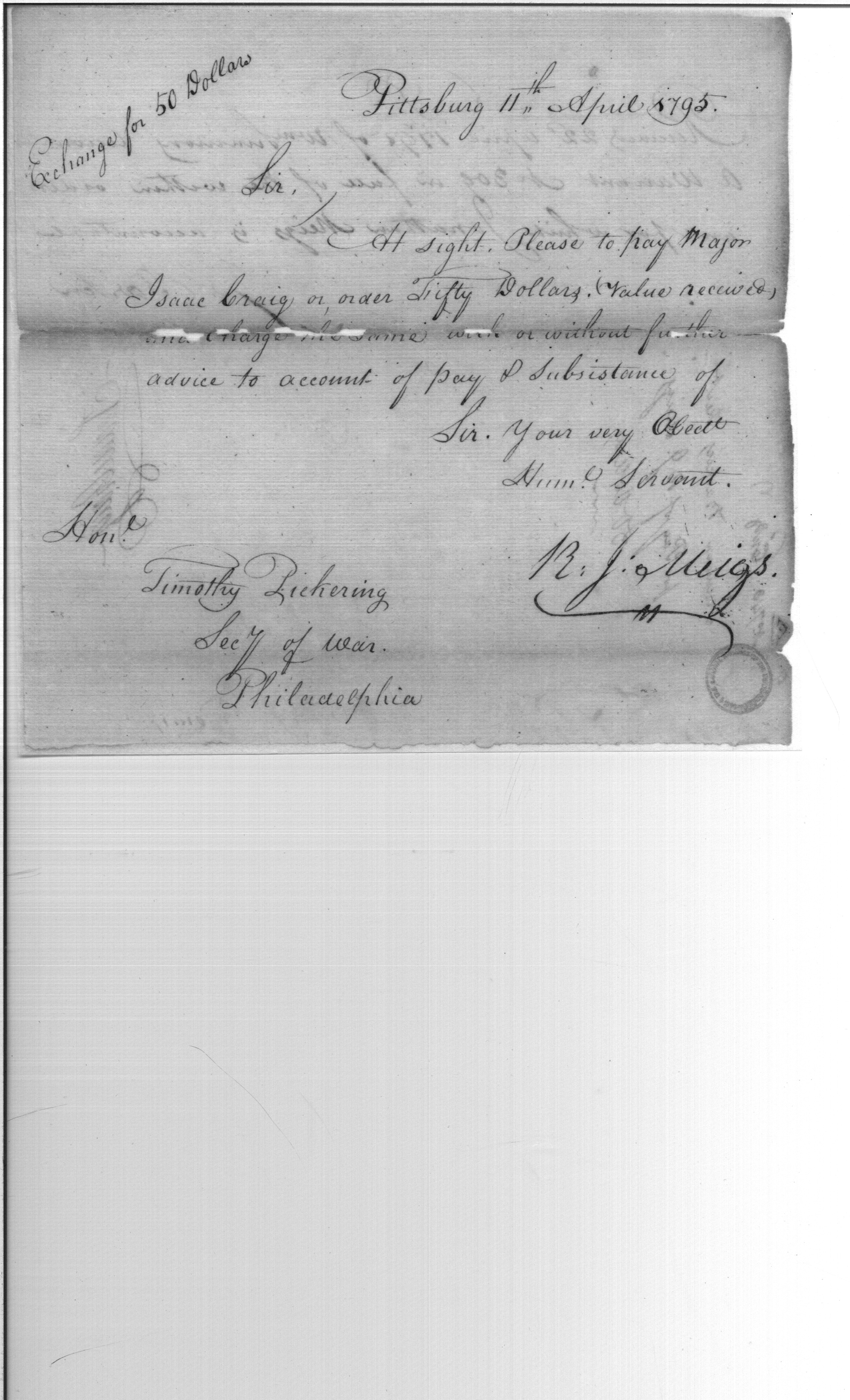 - Document: Payment to Major Isaac Craig pay and subsistence