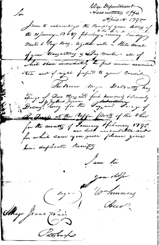 - Document: Pay & Forage of the Troops at the Upper Posts of the Ohio