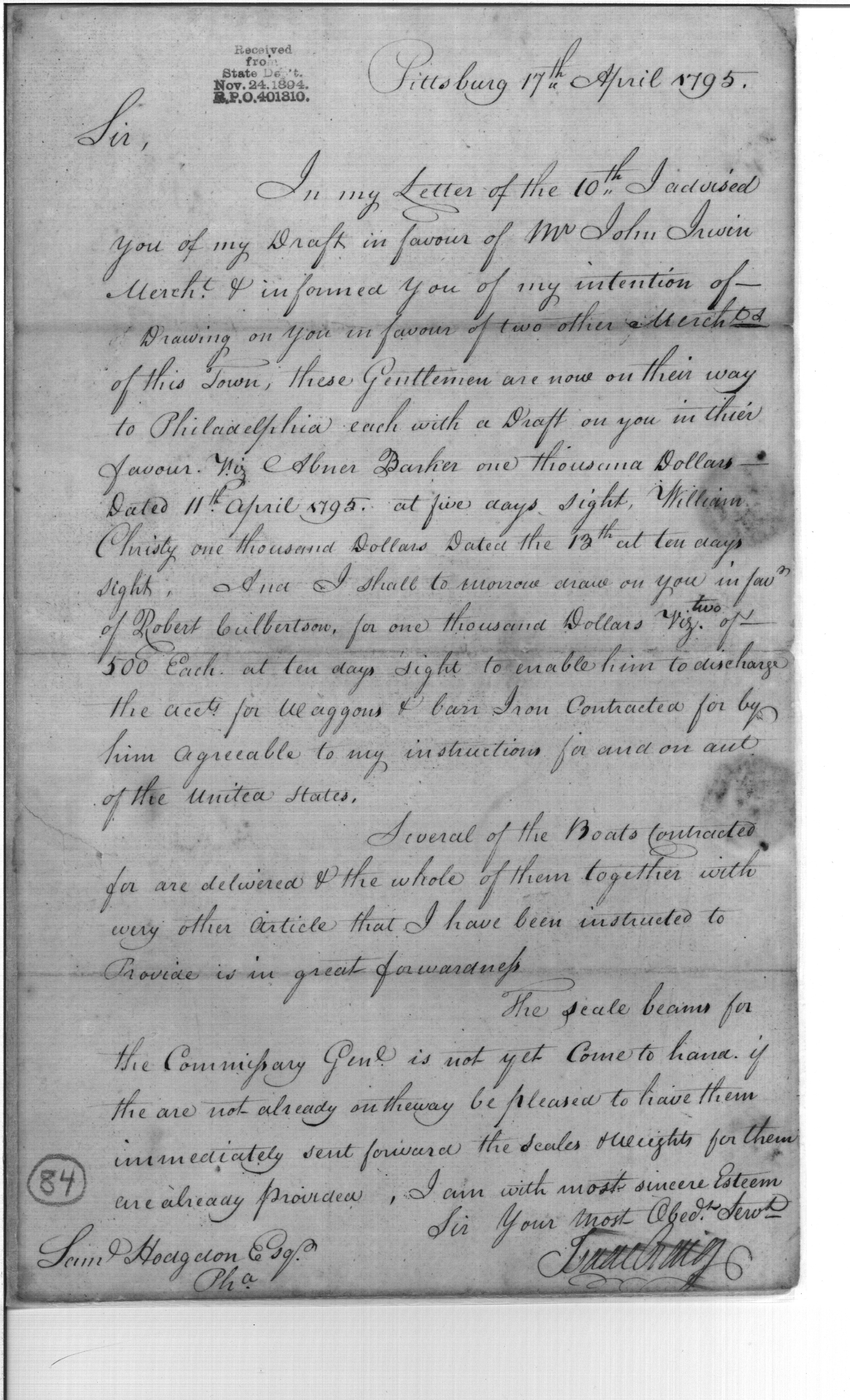 - In source: Collection: Post Revolutionary War Papers, 1784-1815. (RG94)