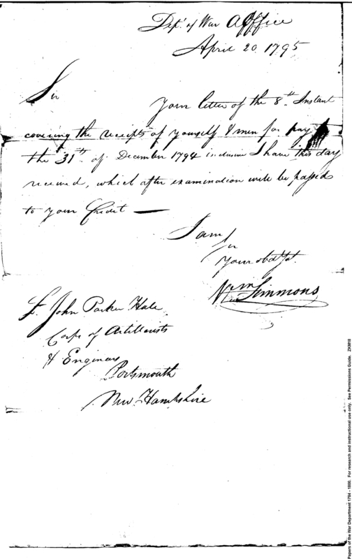 - In source: Collection: Post Revolutionary War Papers, 1784-1815. (RG94)