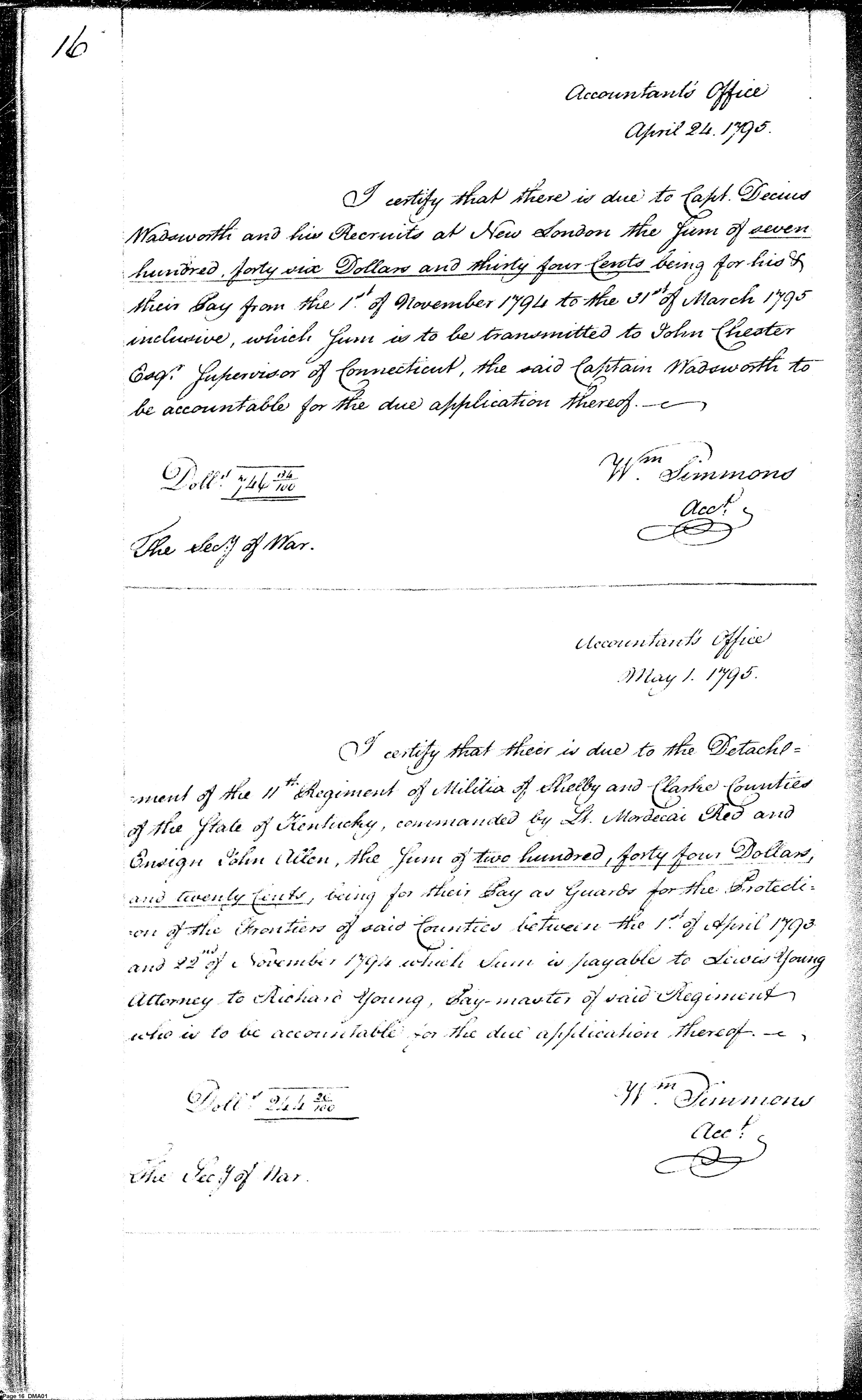 - In source: Collection: Report Books of the Accountant of the War Department, April 14, 1795-Dec 31, 1817. (RG217)