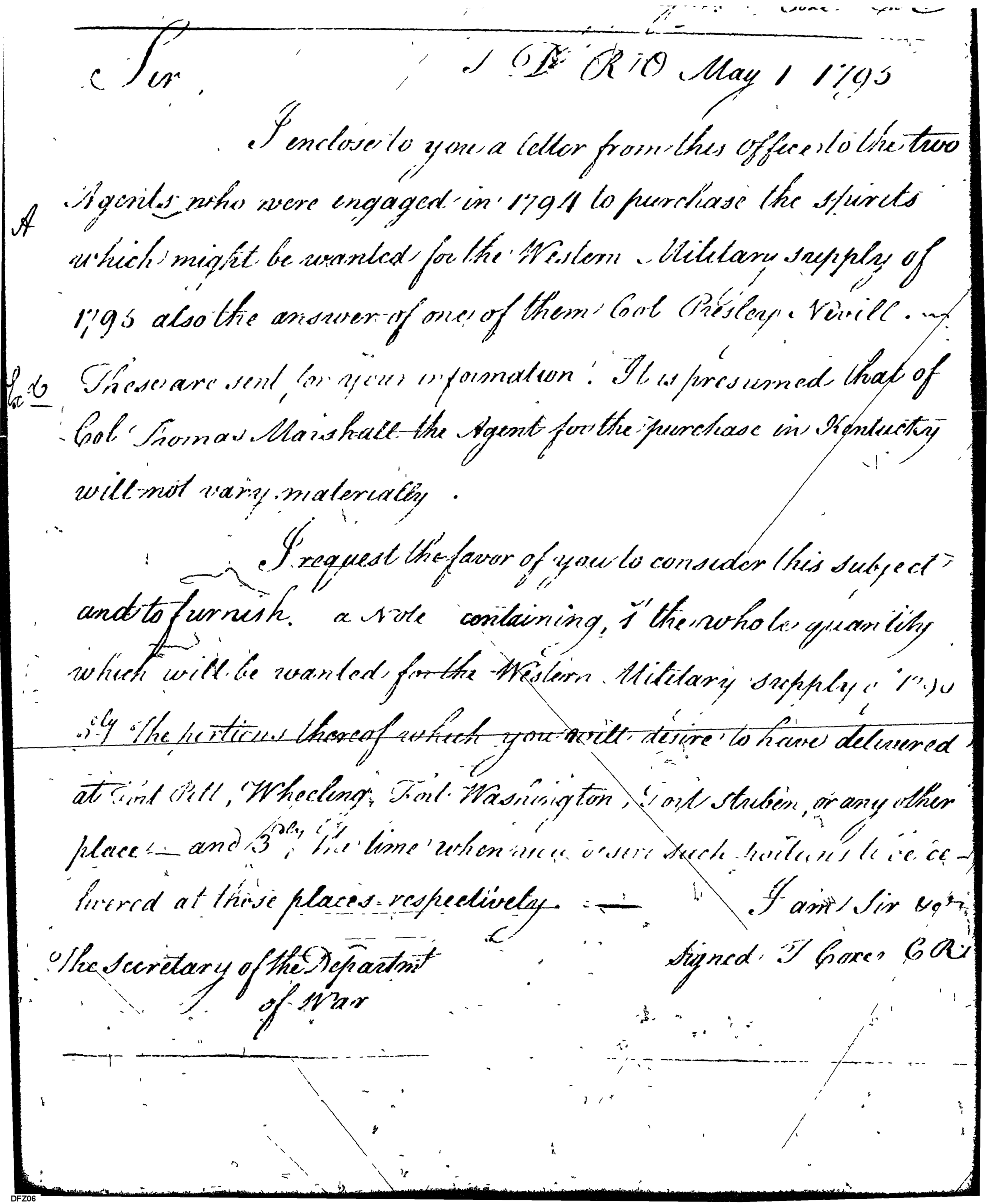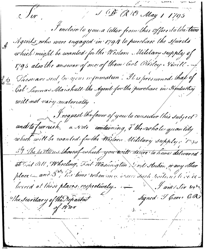 - In source: Collection: Letters Sent (Letterbook) of Commissioner of the Revenue, Tench Coxe, Relating to War Department Procurement, Apr 14, 1794-Aug 26, 1796. (RG75) (M74)