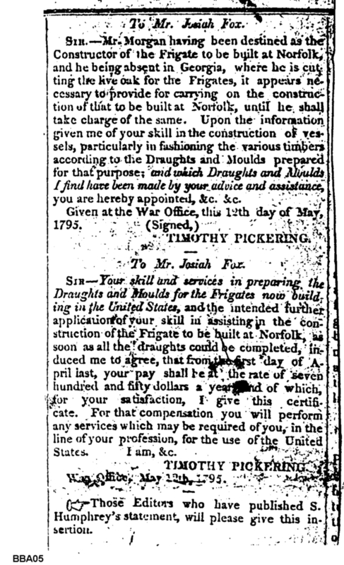 - Document: Discussion of U.S. Frigate Construction & Josiah Fox's Performance as Naval Constructor