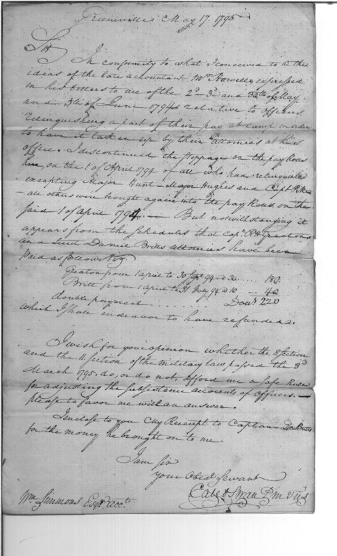 - In source: Collection: Post Revolutionary War Papers, 1784-1815. (RG94)