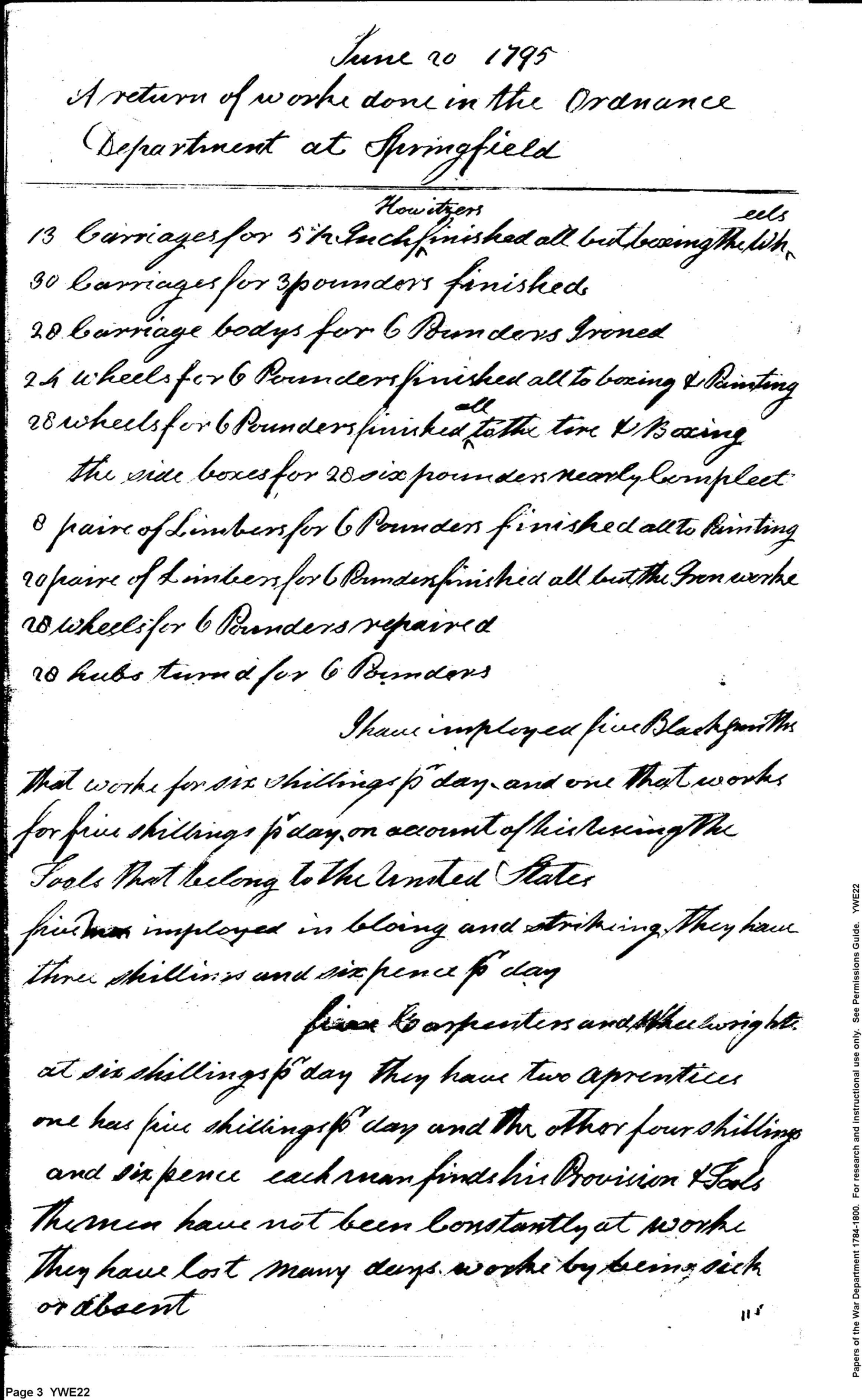 - Document: A Return of Worke Done in the Ordnace Department at Springfield