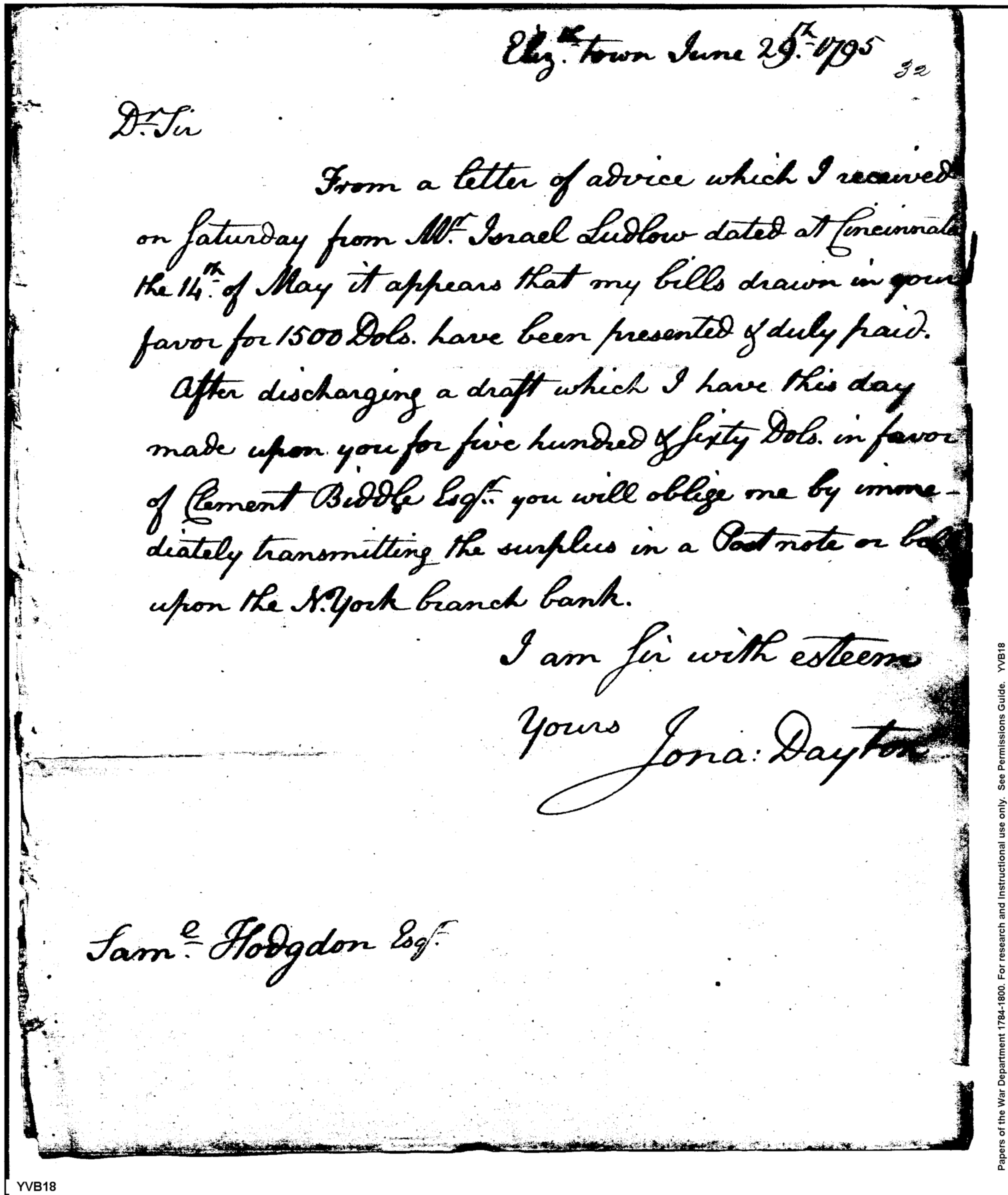 - Document: Bills in Hodgdon's Favor Being Settled