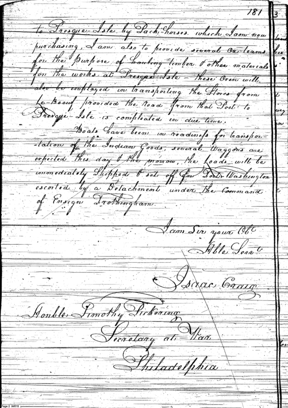 - Document: Major Craig discusses supply and logistics with Secretary Pickering