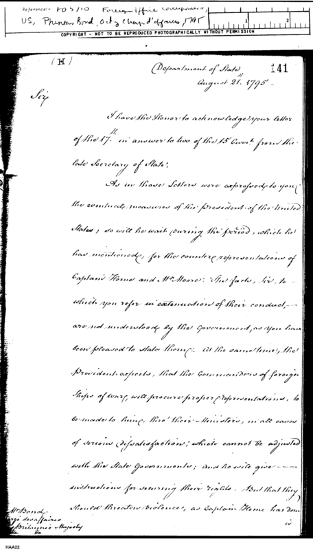 - In source: Collection: FO 5/10 Foreign Office Correspondence, America(United States), General Correspondence.