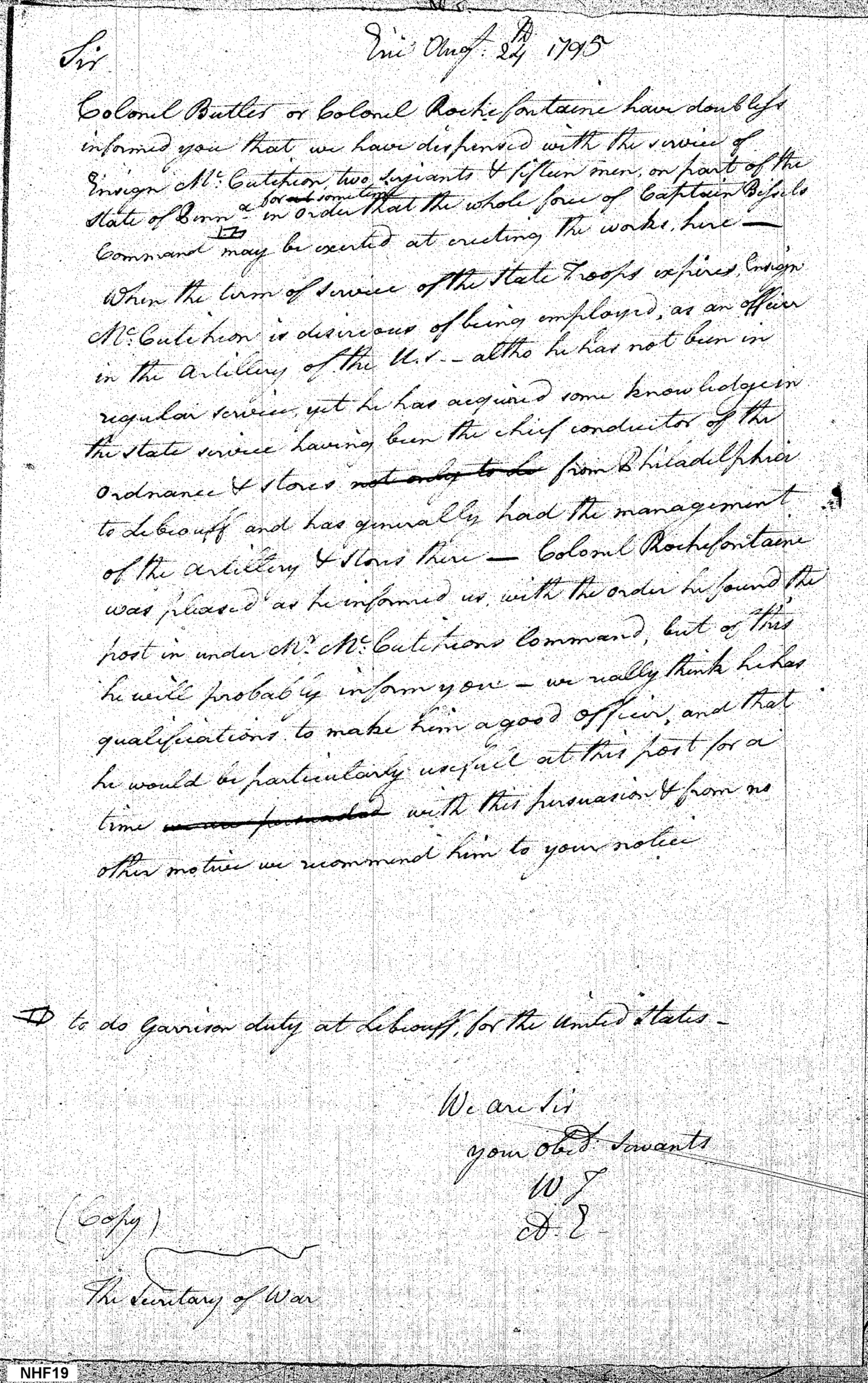 Recommending Ensign McCutcheon
