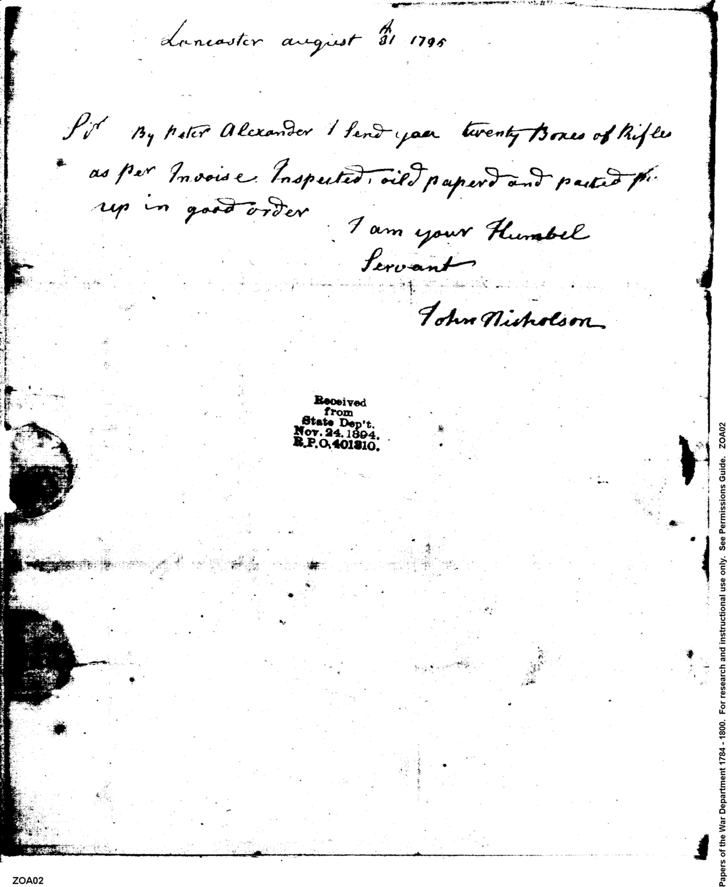 Post Revolutionary War Papers, 1784-1815. (RG94)