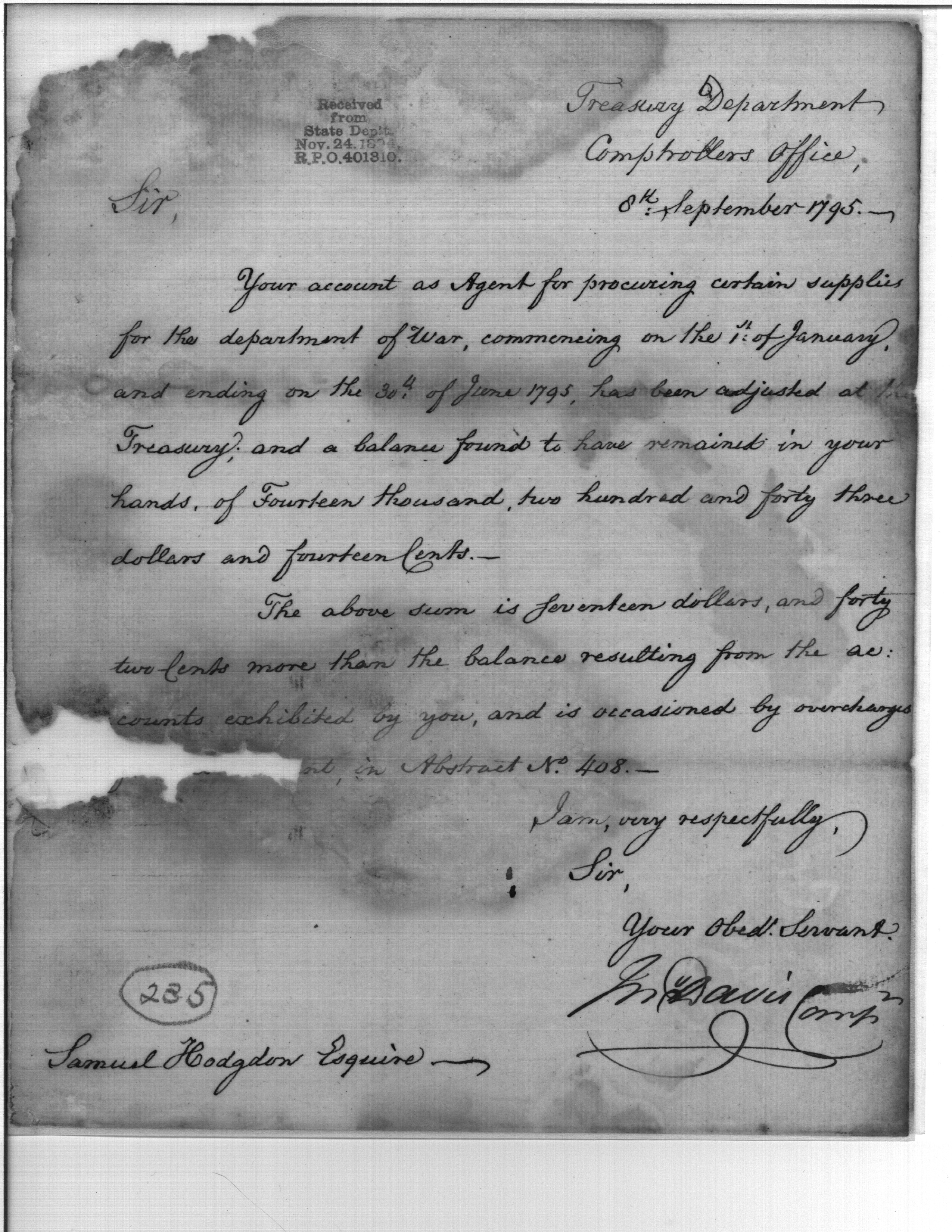 - Document: Discrepancy in Hodgdon's Account