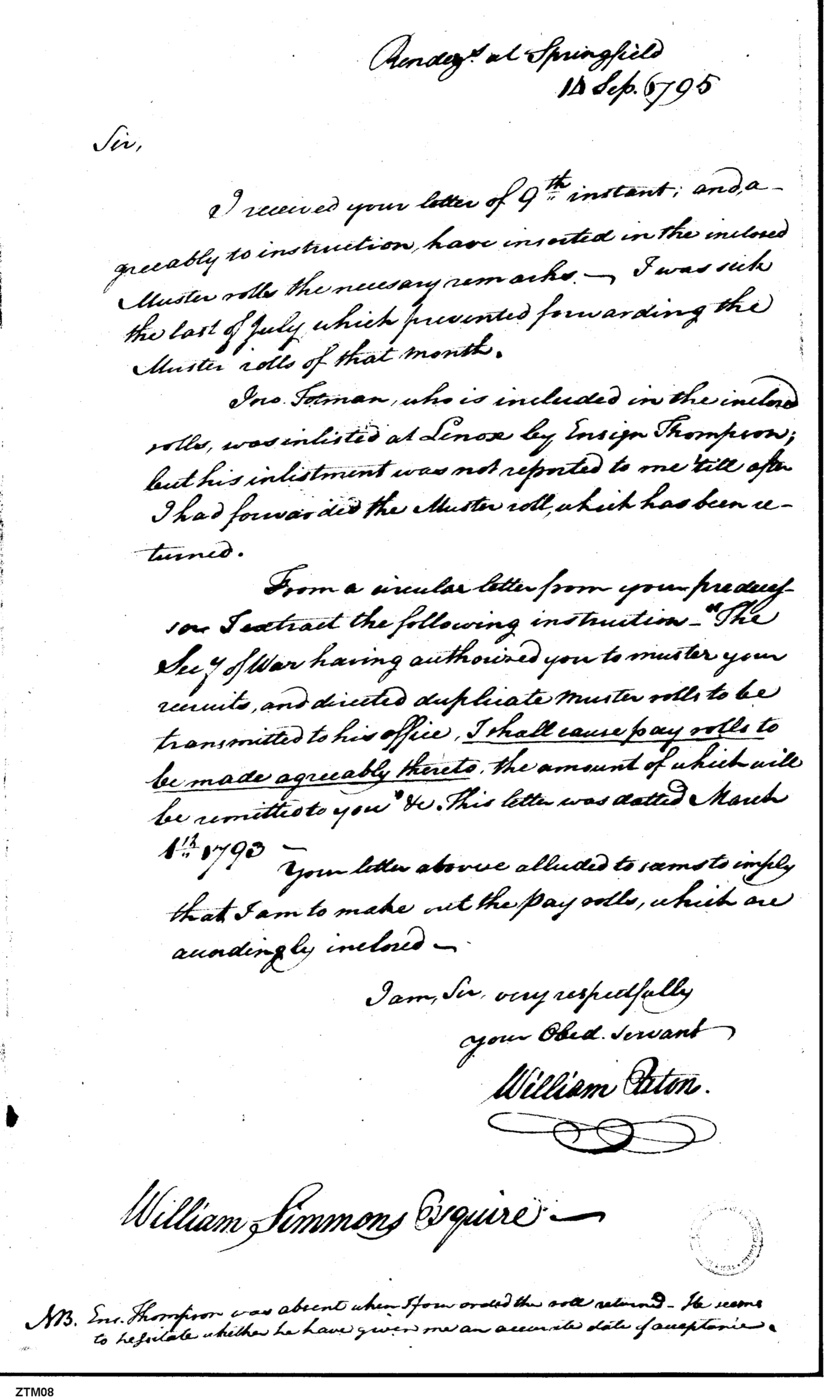 - Document: Enclosed Muster Rolls, Extract of Instructions