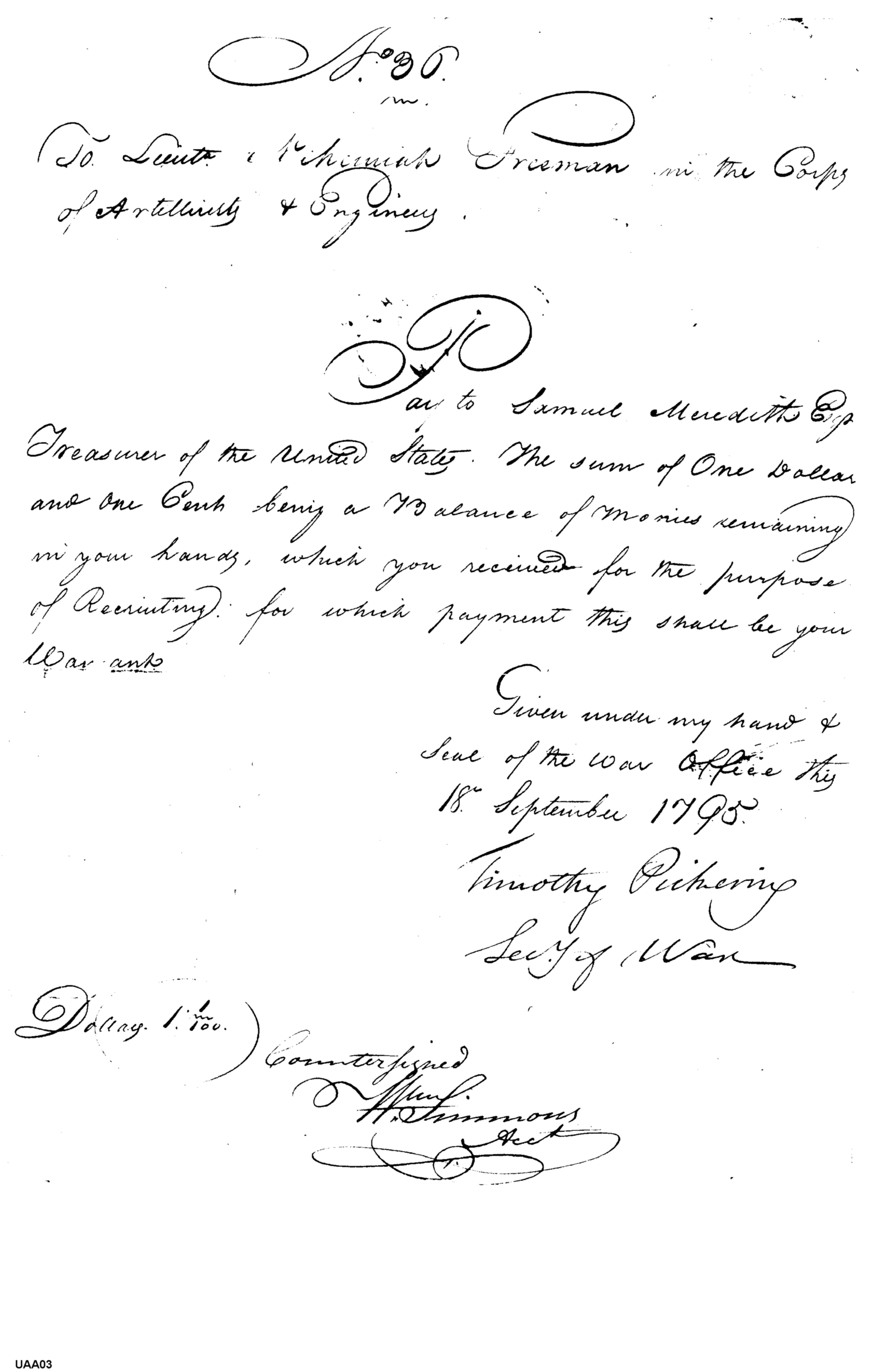 - Document: One Dollar and One Cent to the Treasurer