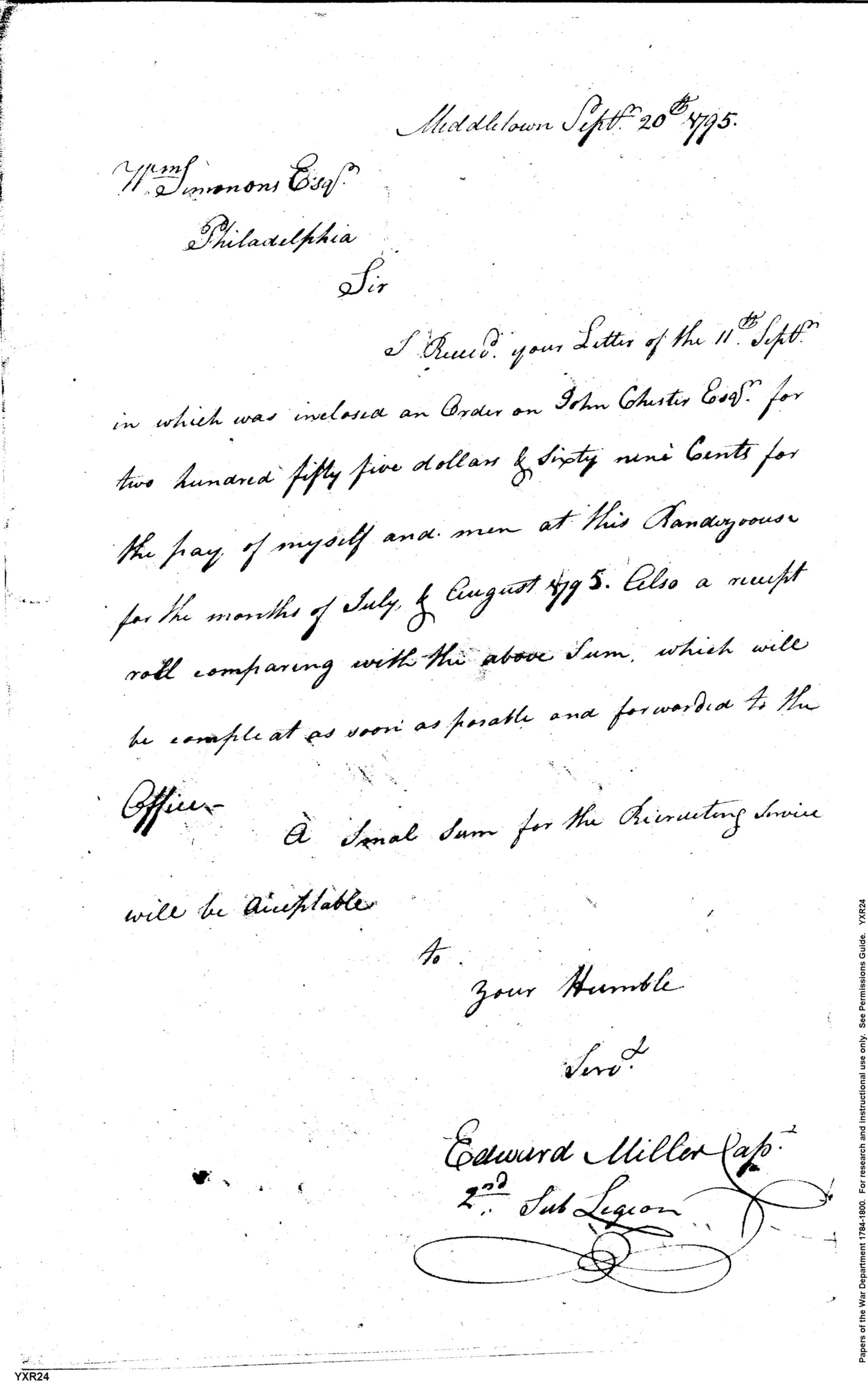 - Document: Receipt of Order on John Chester for Money Due Miller
