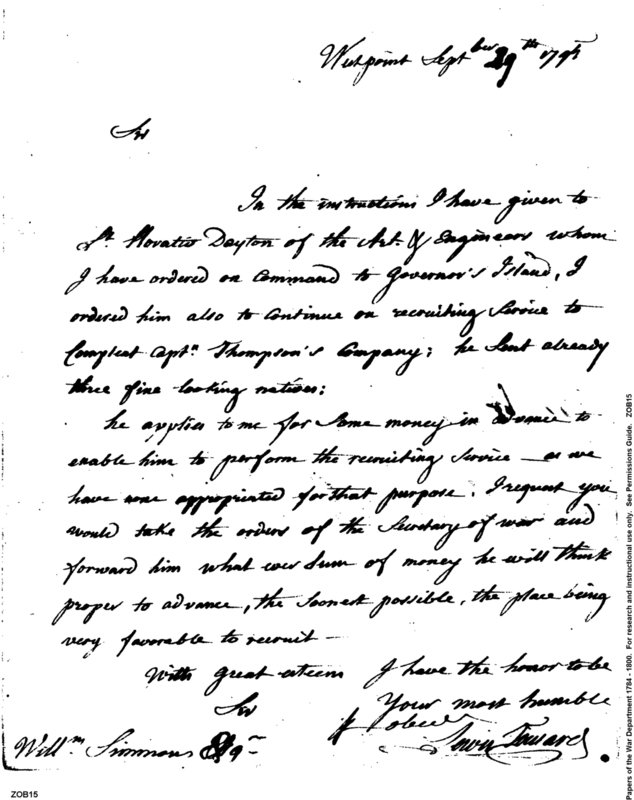 - In source: Collection: Post Revolutionary War Papers, 1784-1815. (RG94)