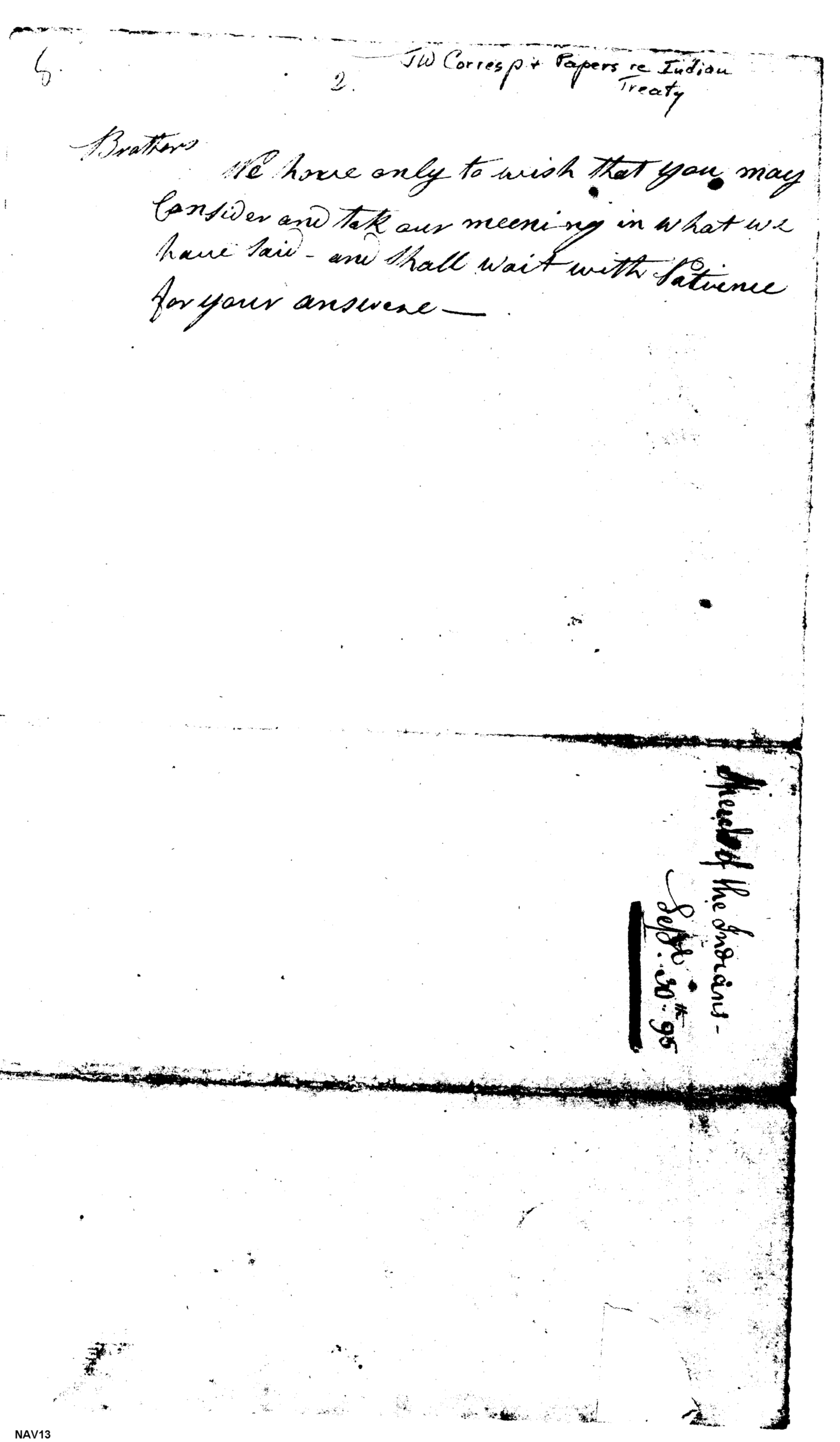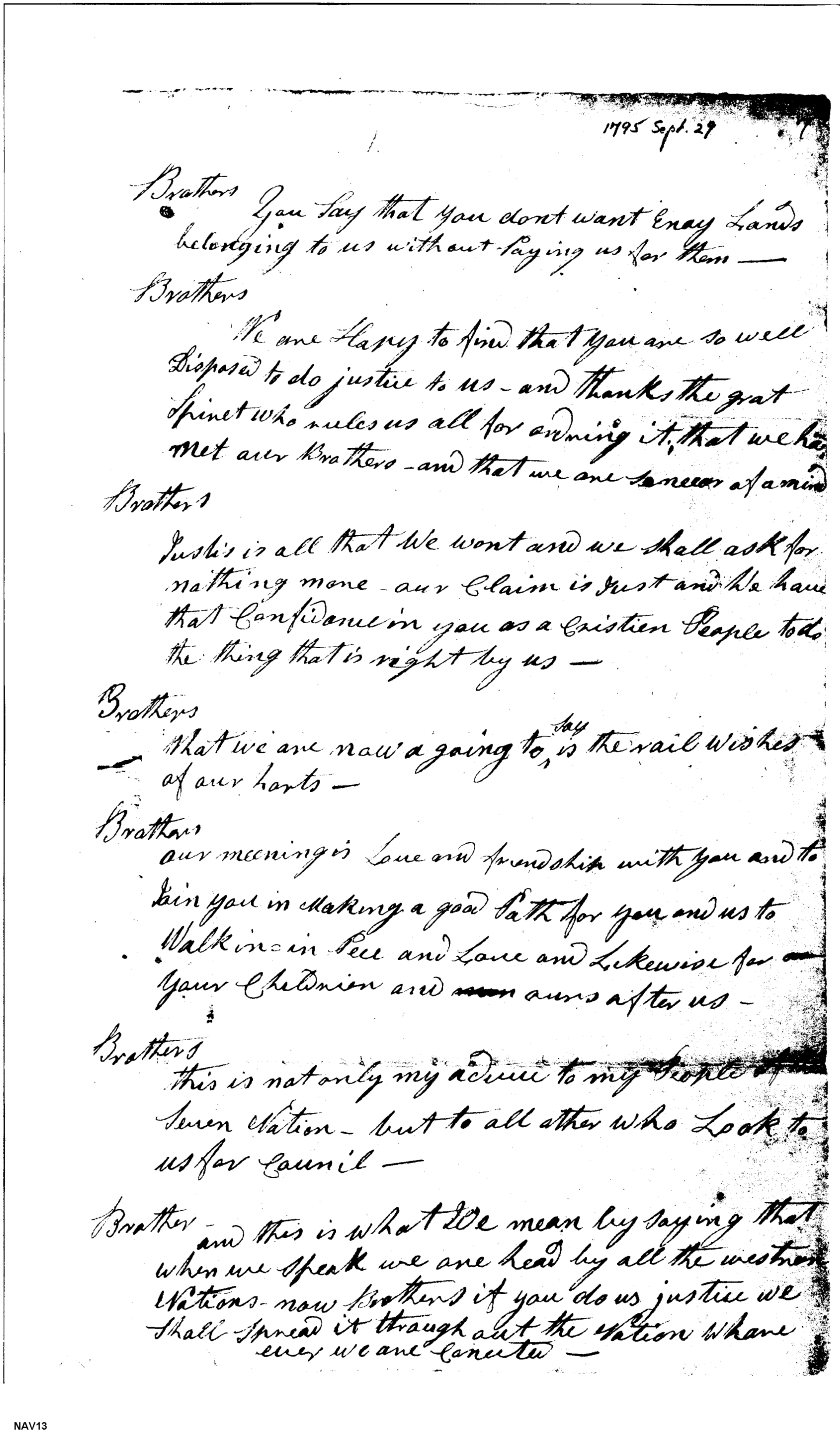 - Document: Speech by Indian Chief to U.S. Commissioner at Fort George, 09/29/1795.