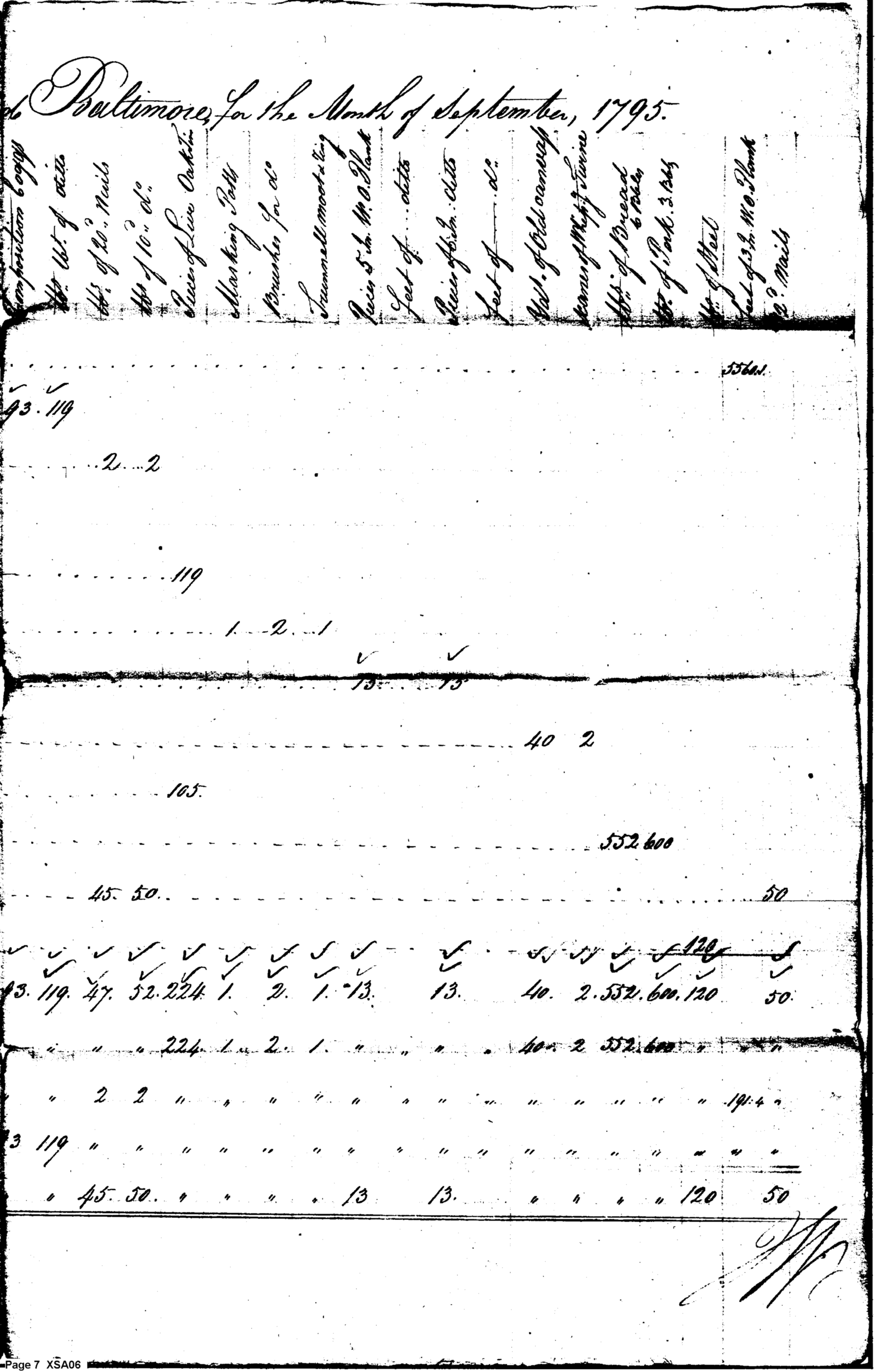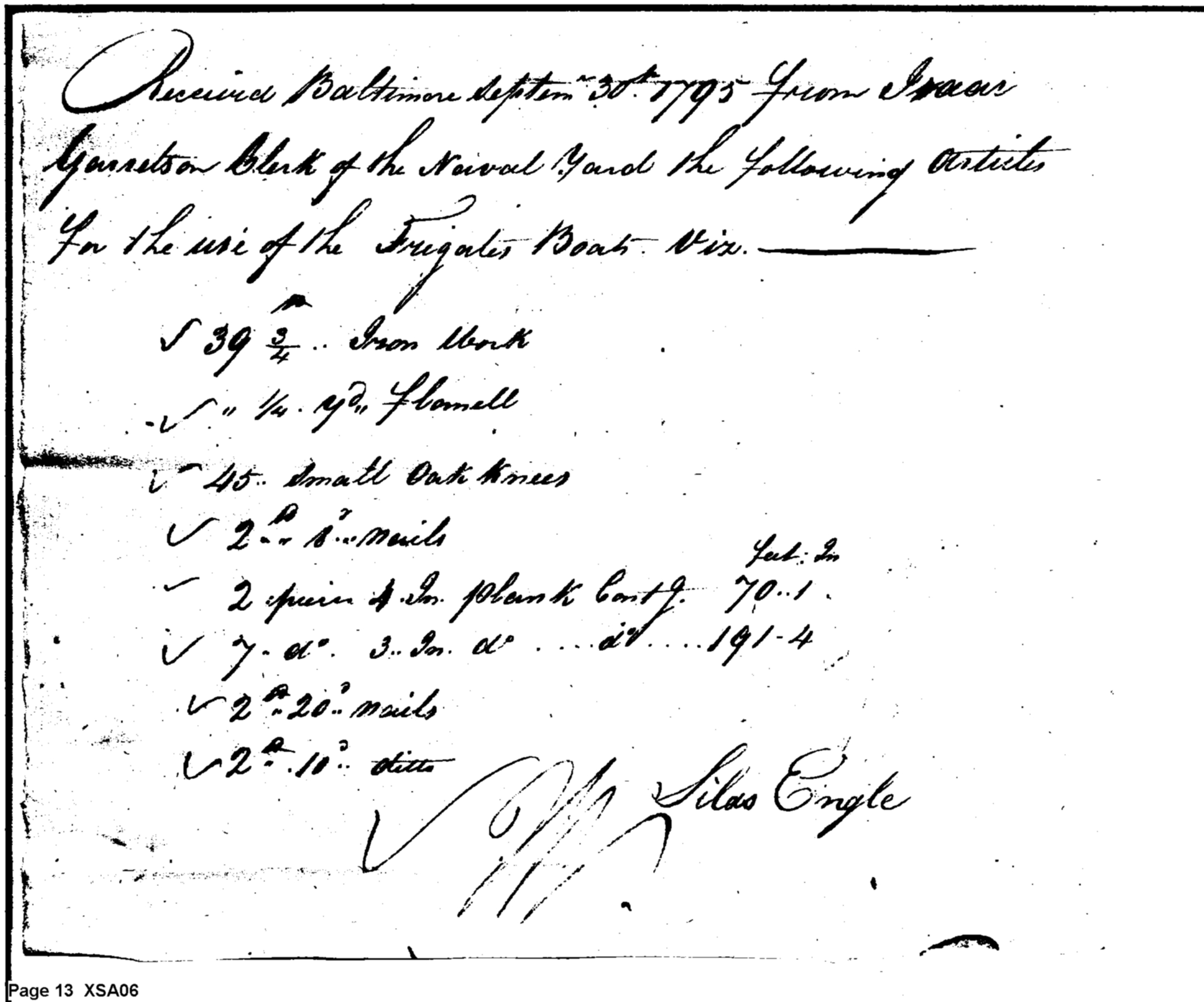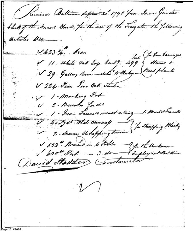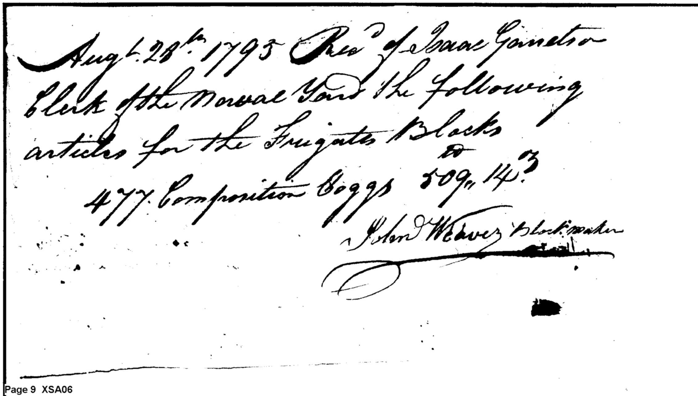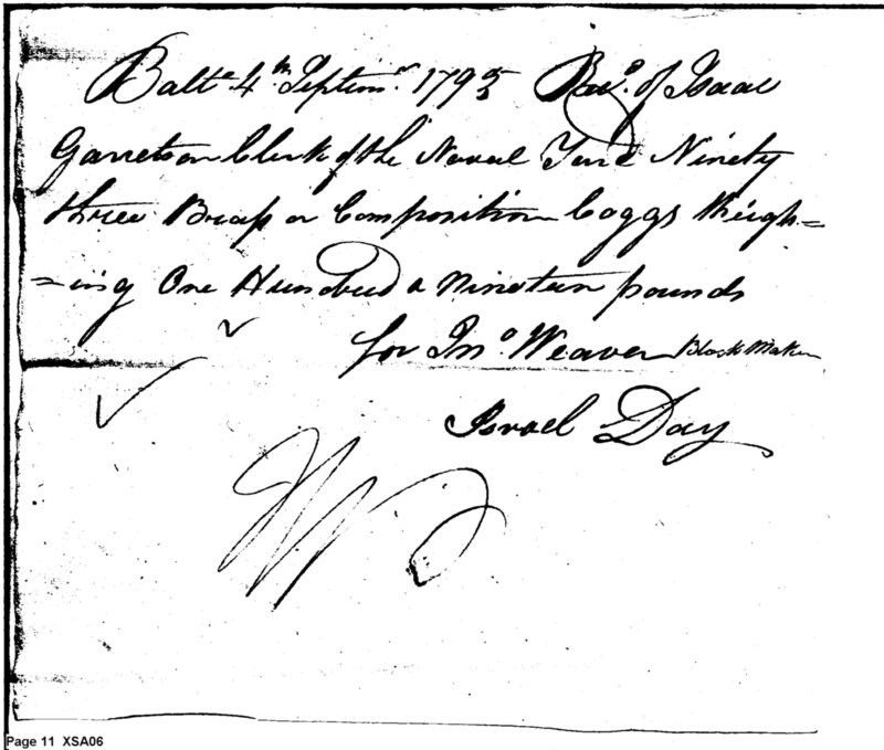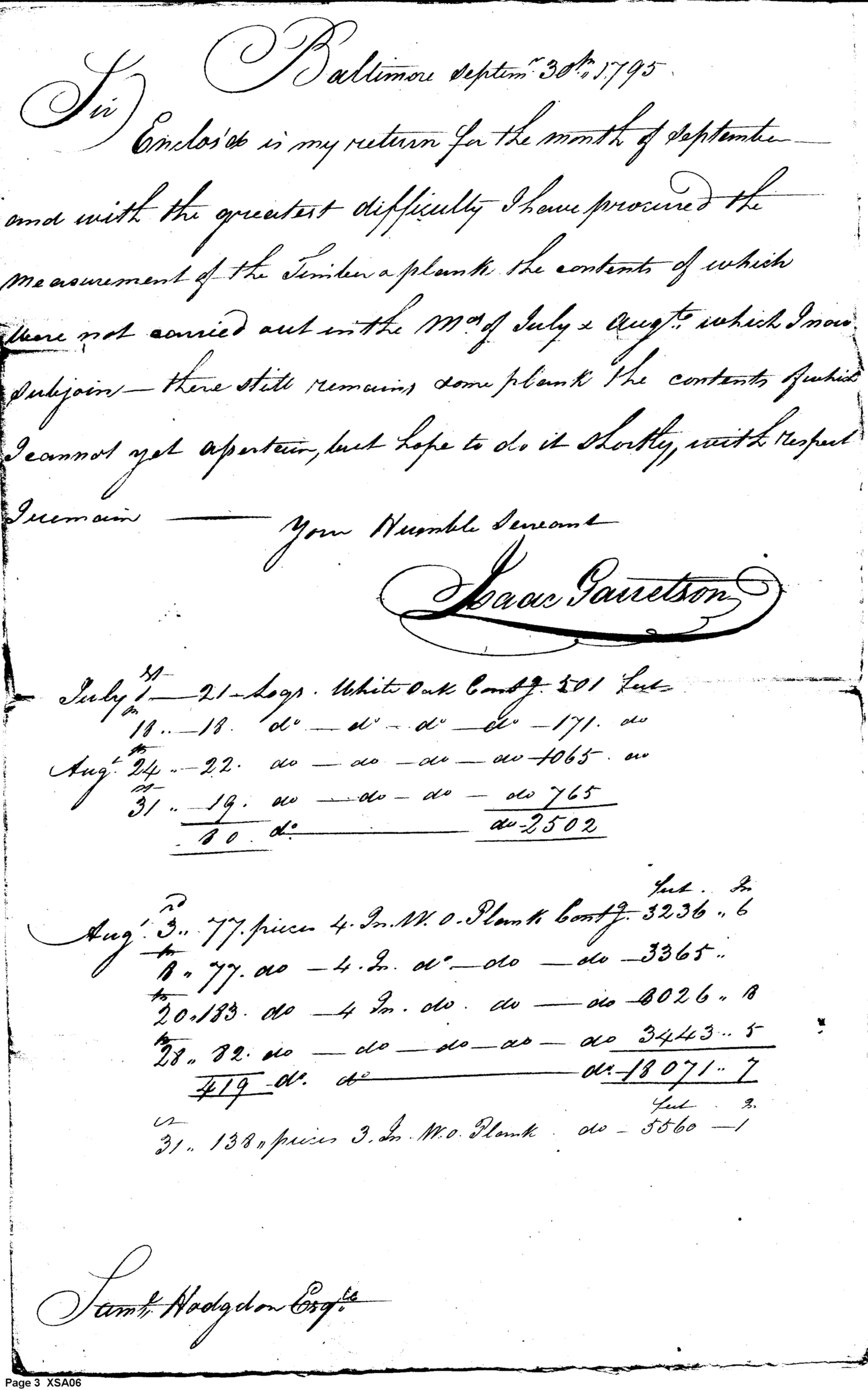 - Document: Return for the month of September 1795 from Isaac Garretson clerk ship yard Baltimore