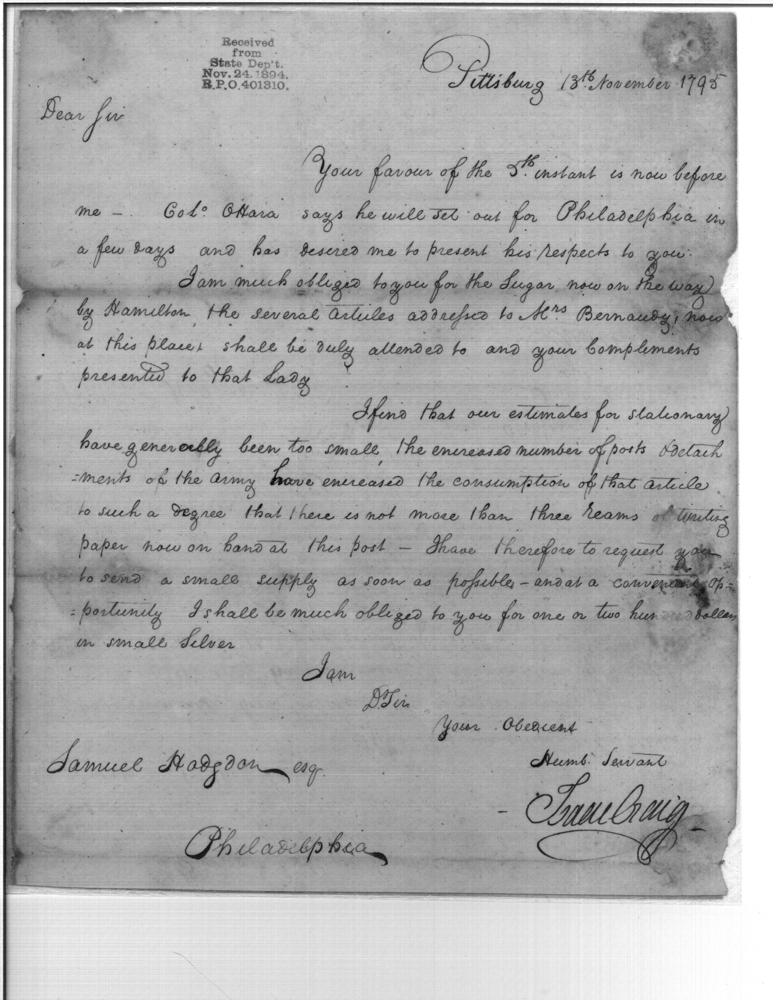 - In source: Collection: Post Revolutionary War Papers, 1784-1815. (RG94)