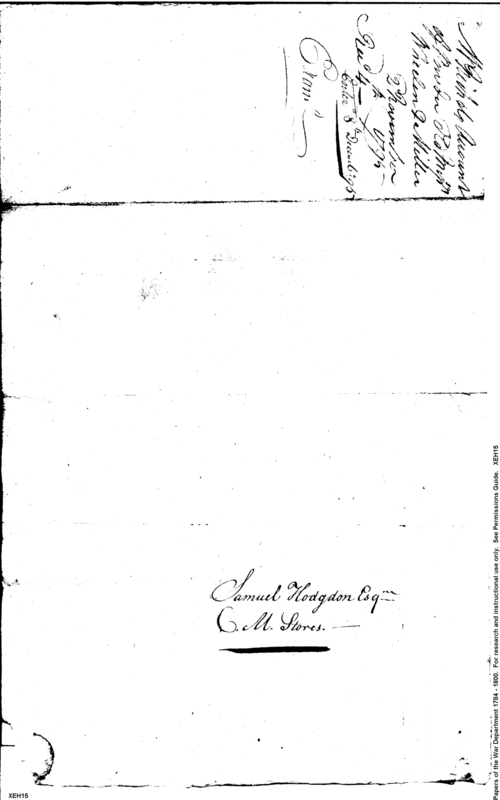 - In source: Collection: Correspondence, Reports, Returns, Bills, Accounts Current' Statements, Receipts, Vouchers and Contracts of Philadelphia Supply Agencies (Coxe and Irvine Papers), 1794-1842. (RG92)