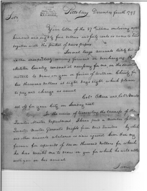 - In source: Collection: Post Revolutionary War Papers, 1784-1815. (RG94)