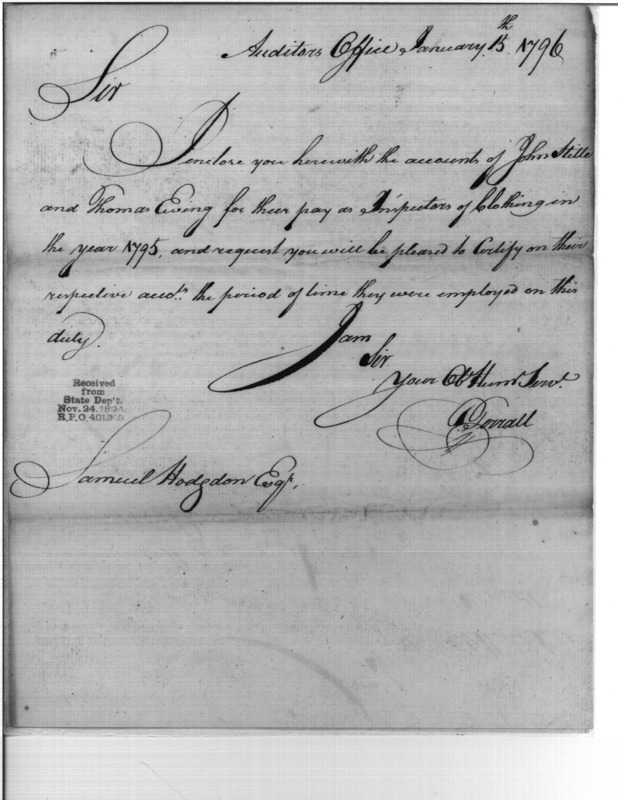 - Document: Accounts of John Stille and Thomas Ewing as Inspectors of Clothing