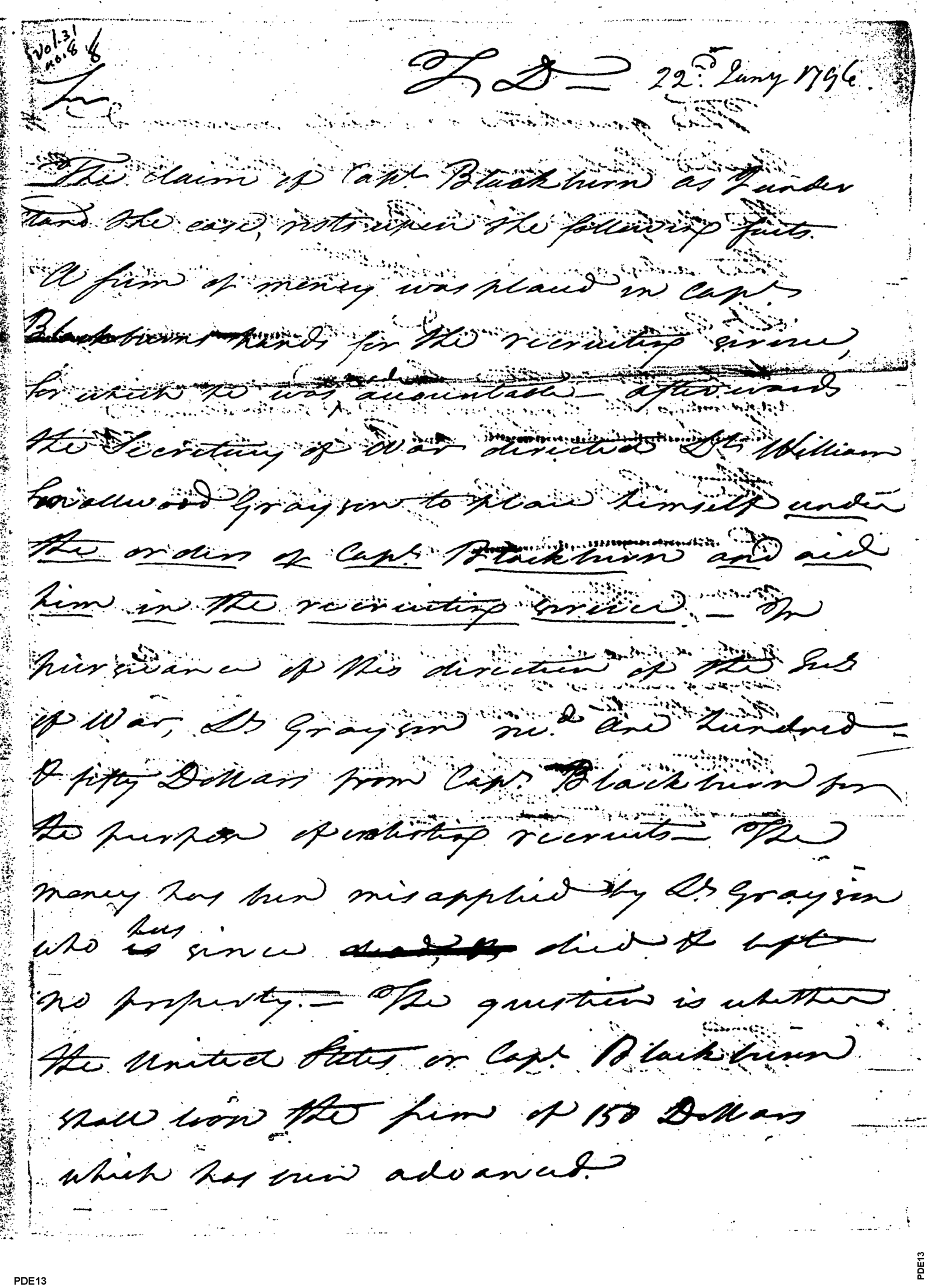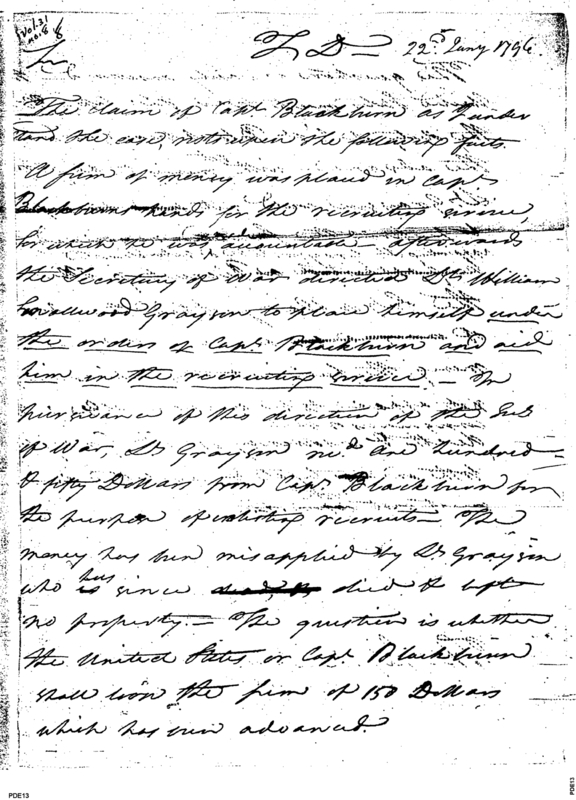 - Document: The Case of Capt. Blackburn and the Loss of Recruitment Money