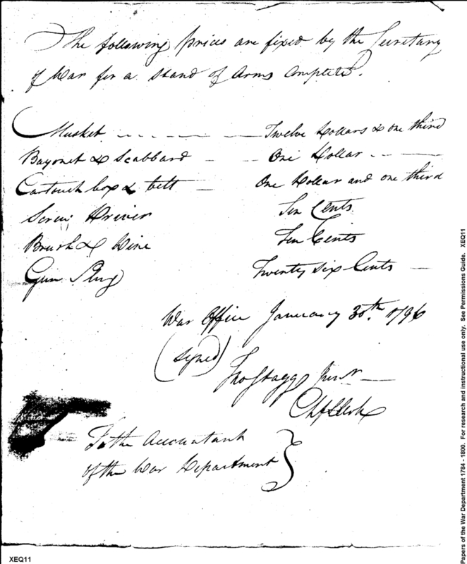 - Document: Following Prices are Fixed by the Secretary of War for a Stand of Arms
