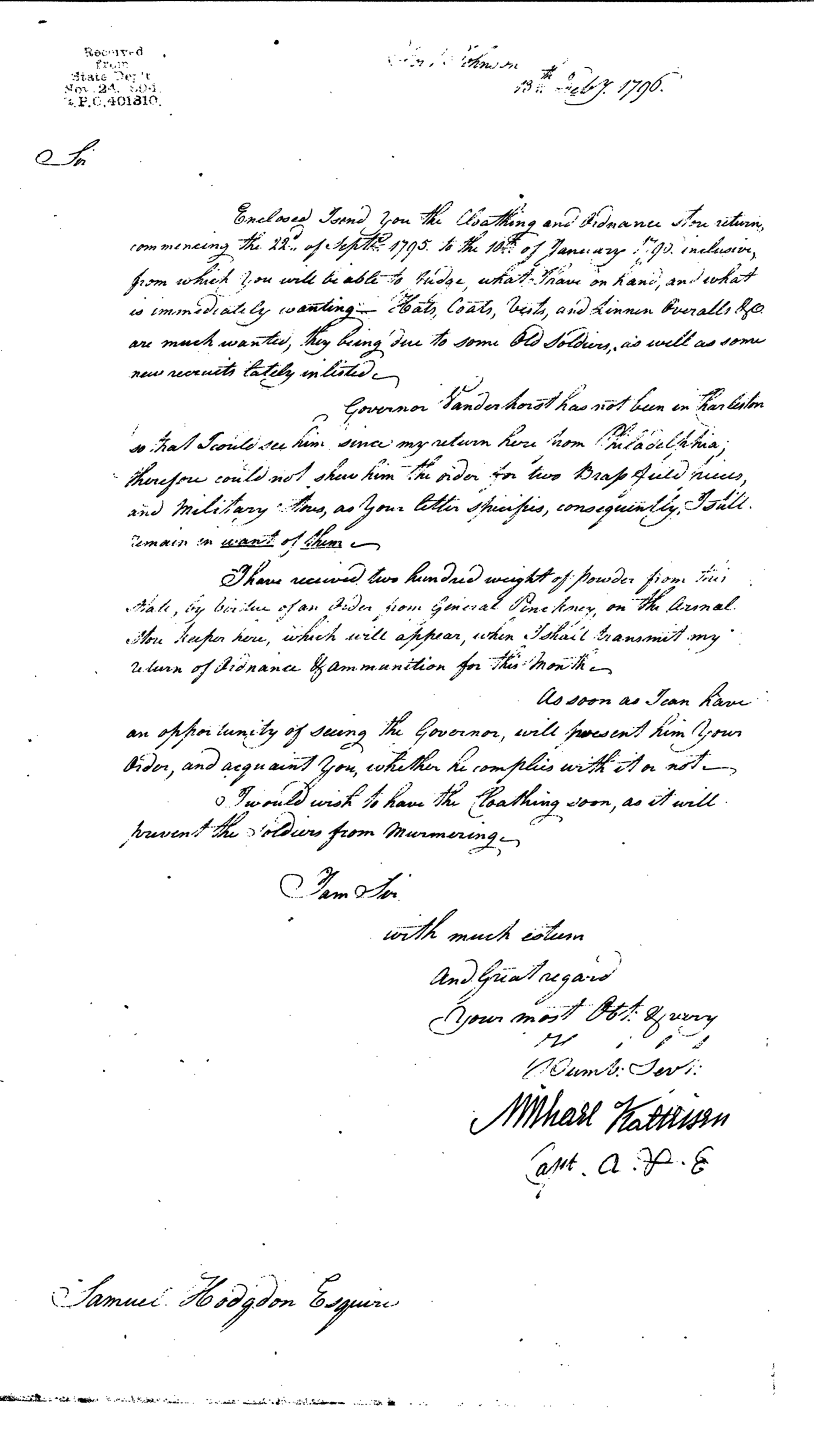 - In source: Collection: First Congress: President's Message Transmitting Reports from the Secretary of War to the Senate [1A-E4] (RG46)