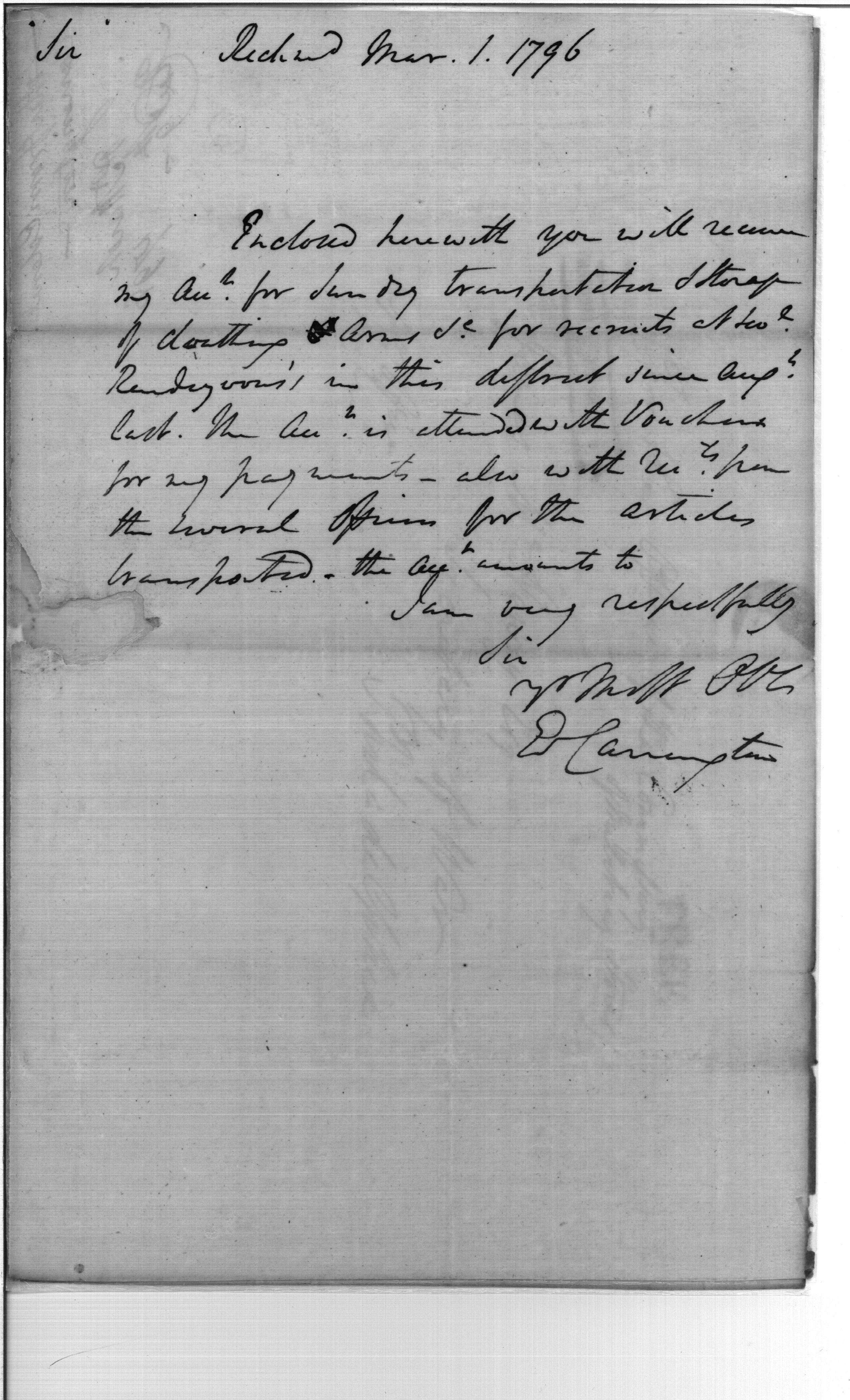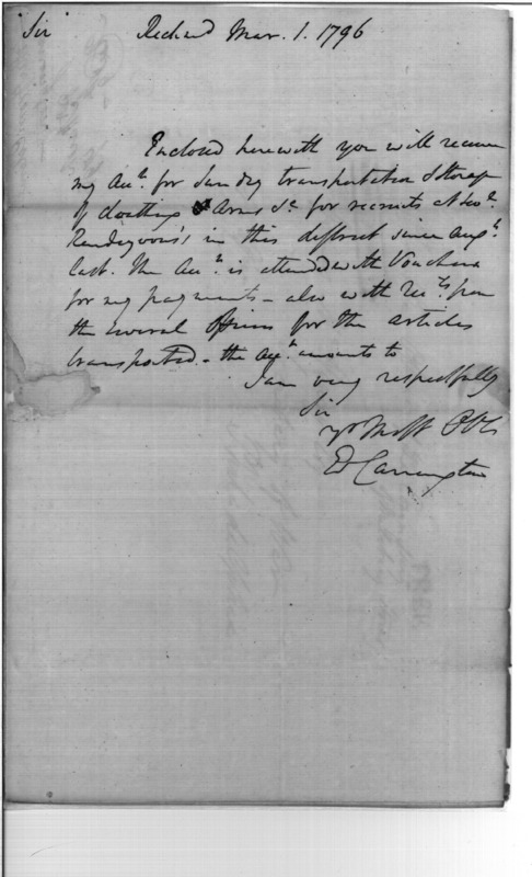 - Document: Accounts for Transportation of Clothing & Arms for Recruits