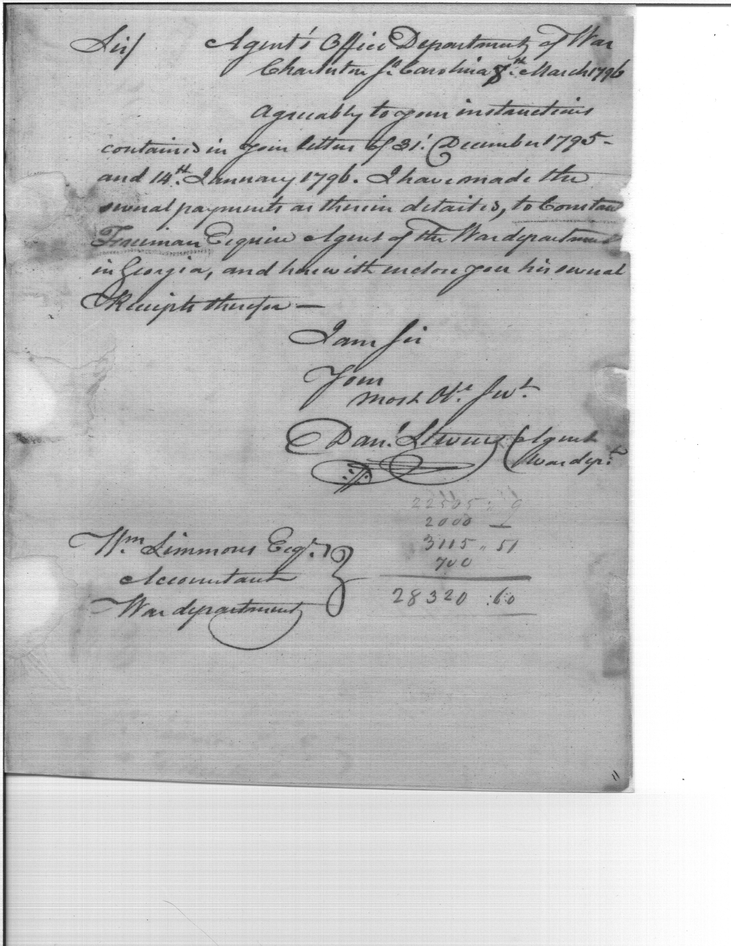 - Document: C. Freeman, Esq., Agent of the War Dept. in Georgia, Paid
