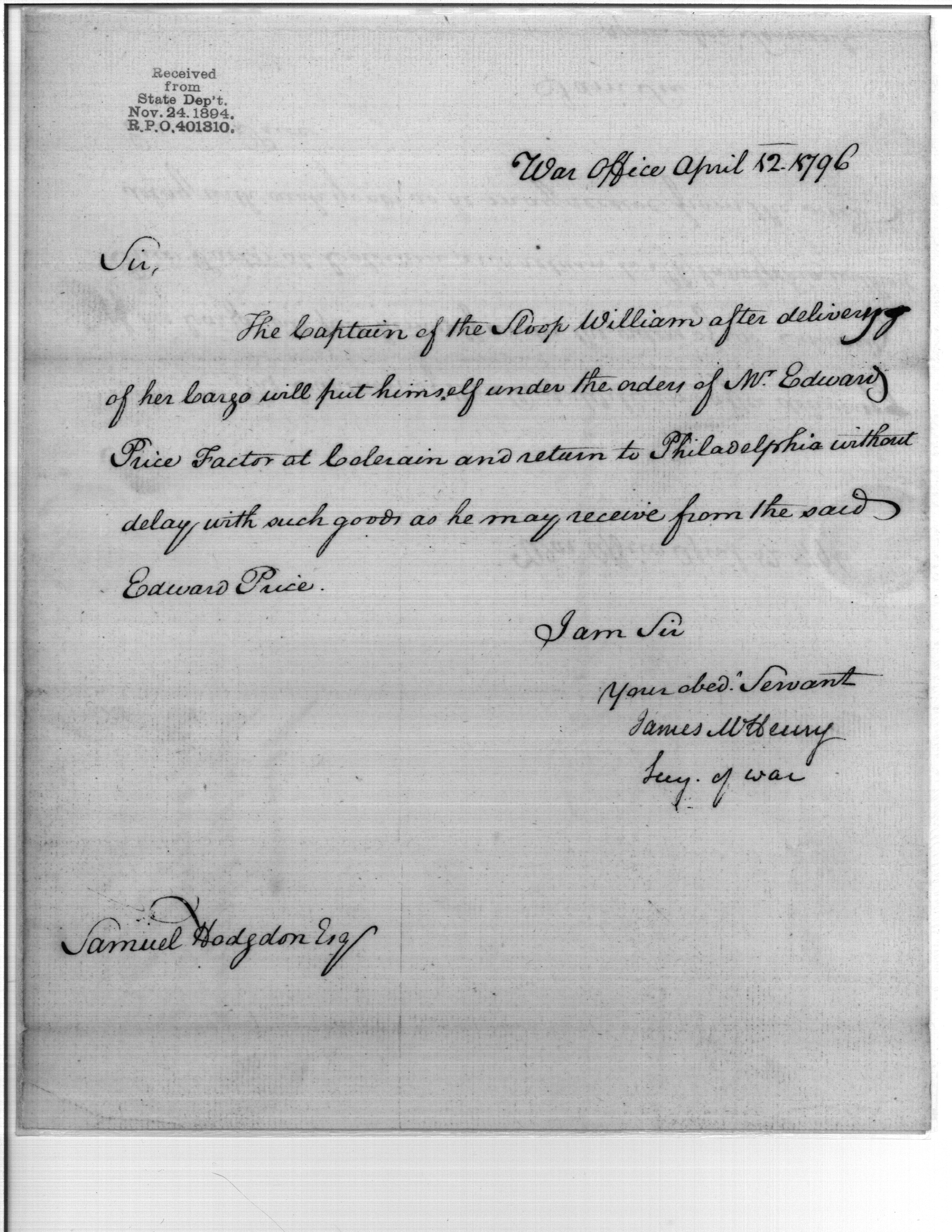 - In source: Collection: Second Congress: Reports and Communications Submitted to the Senate by the Secretary of the Treasury [2A-F2] (RG46)