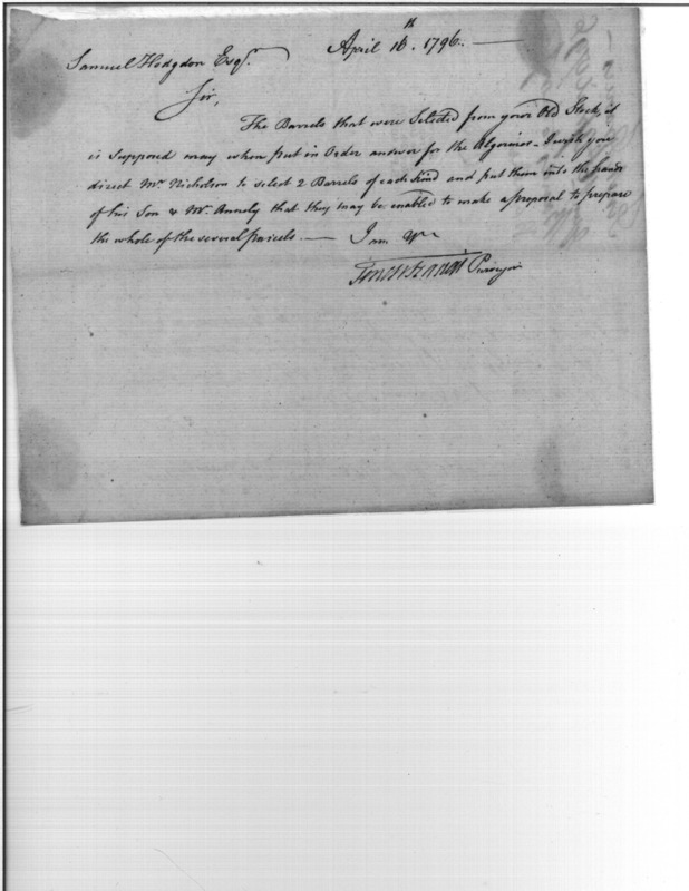 - Document: Request Mr. Nicholson to select 2 barrels, with a reference to Algerines