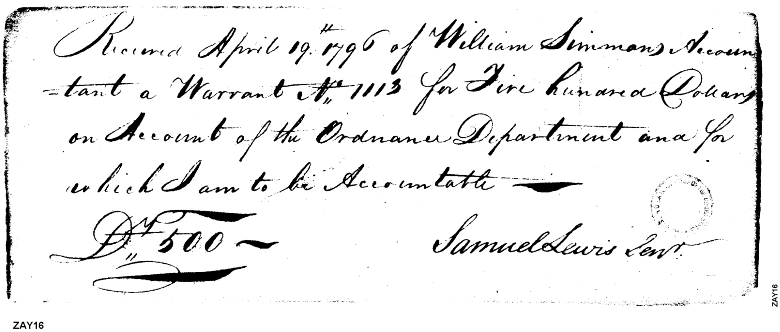 Document ViewerReceipt of Warrant on Account of Ordnance Department