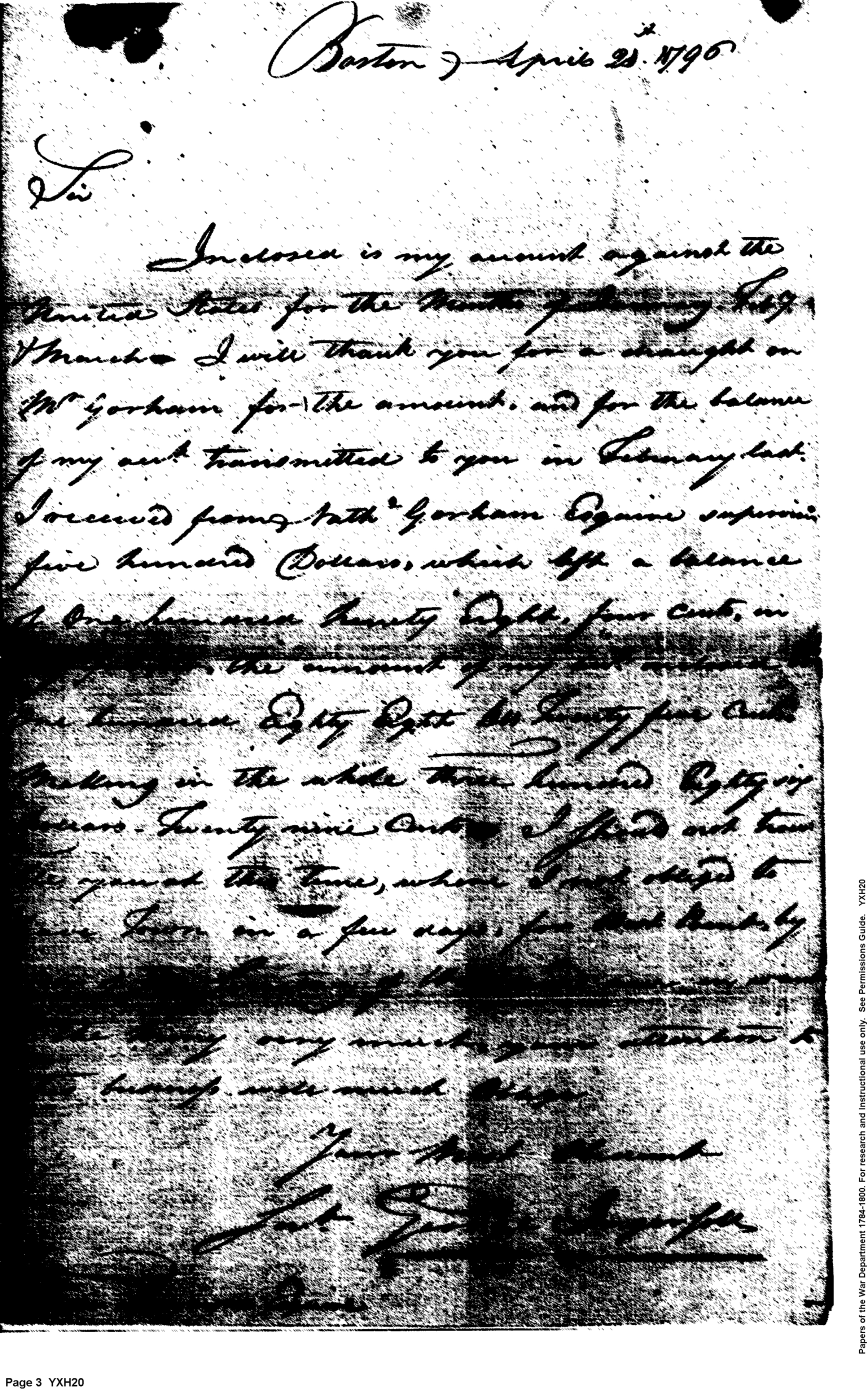 - Document: Account of Ingersoll for pay, January to March 1796.