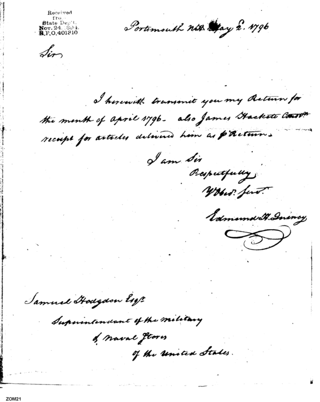 Document ViewerSubmission of Returns for April 1796, with James Hackett's Contract Receipts
