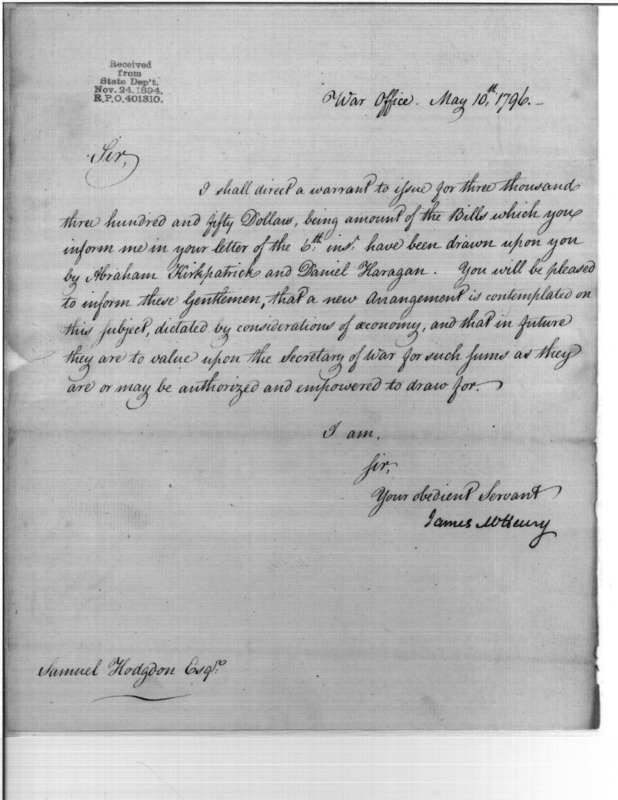 - In source: Collection: Post Revolutionary War Papers, 1784-1815. (RG94)