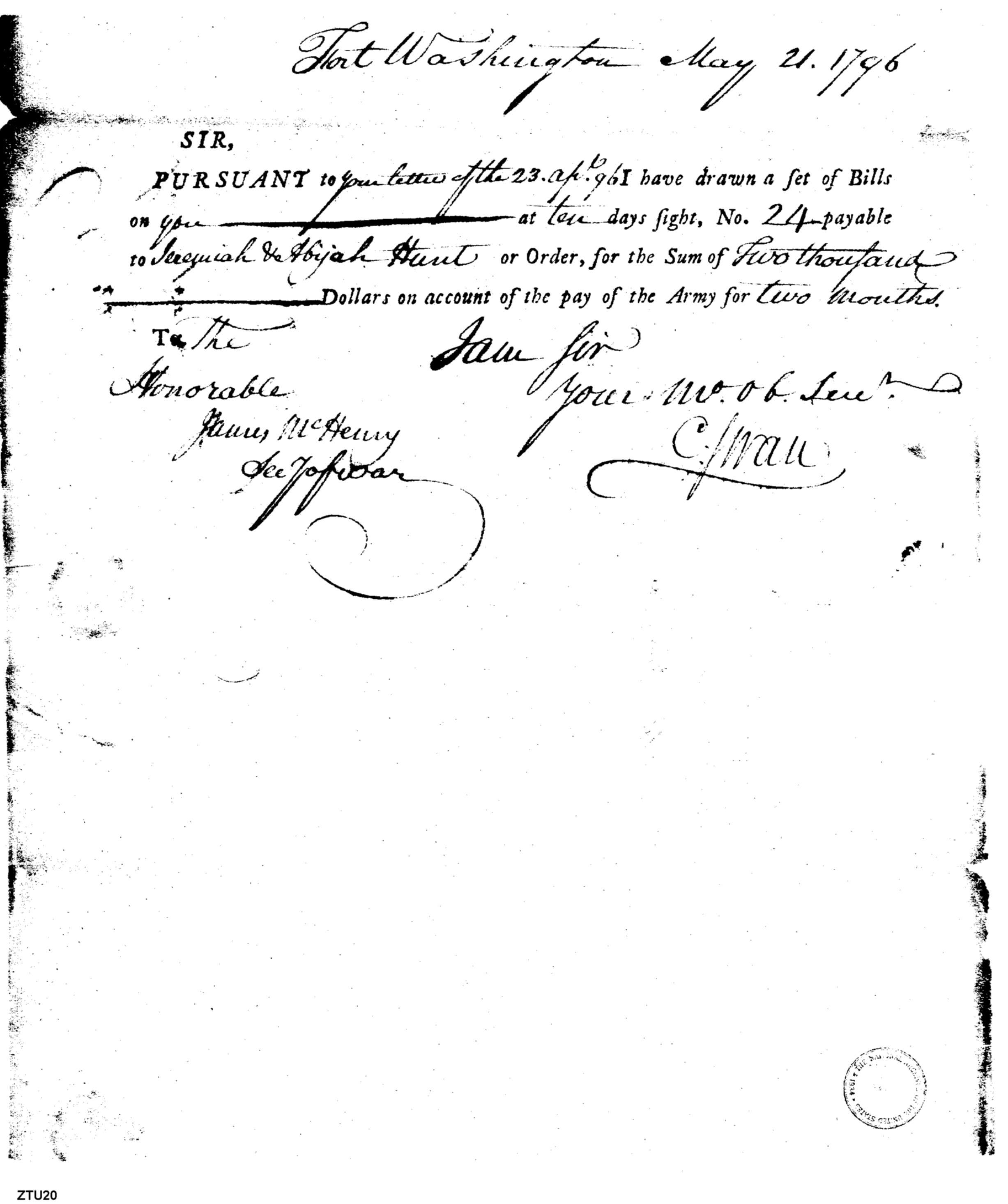 - Document: Set of Bills Payable to Jeremiah & Abijah Hunt